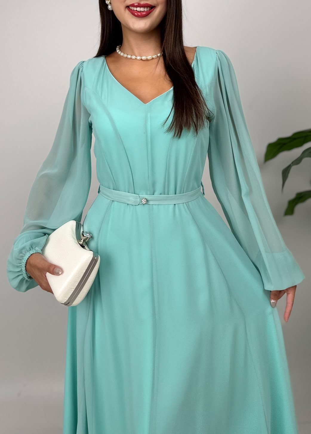 1032 ŞİFON V YAKA ELBİSE MİNT