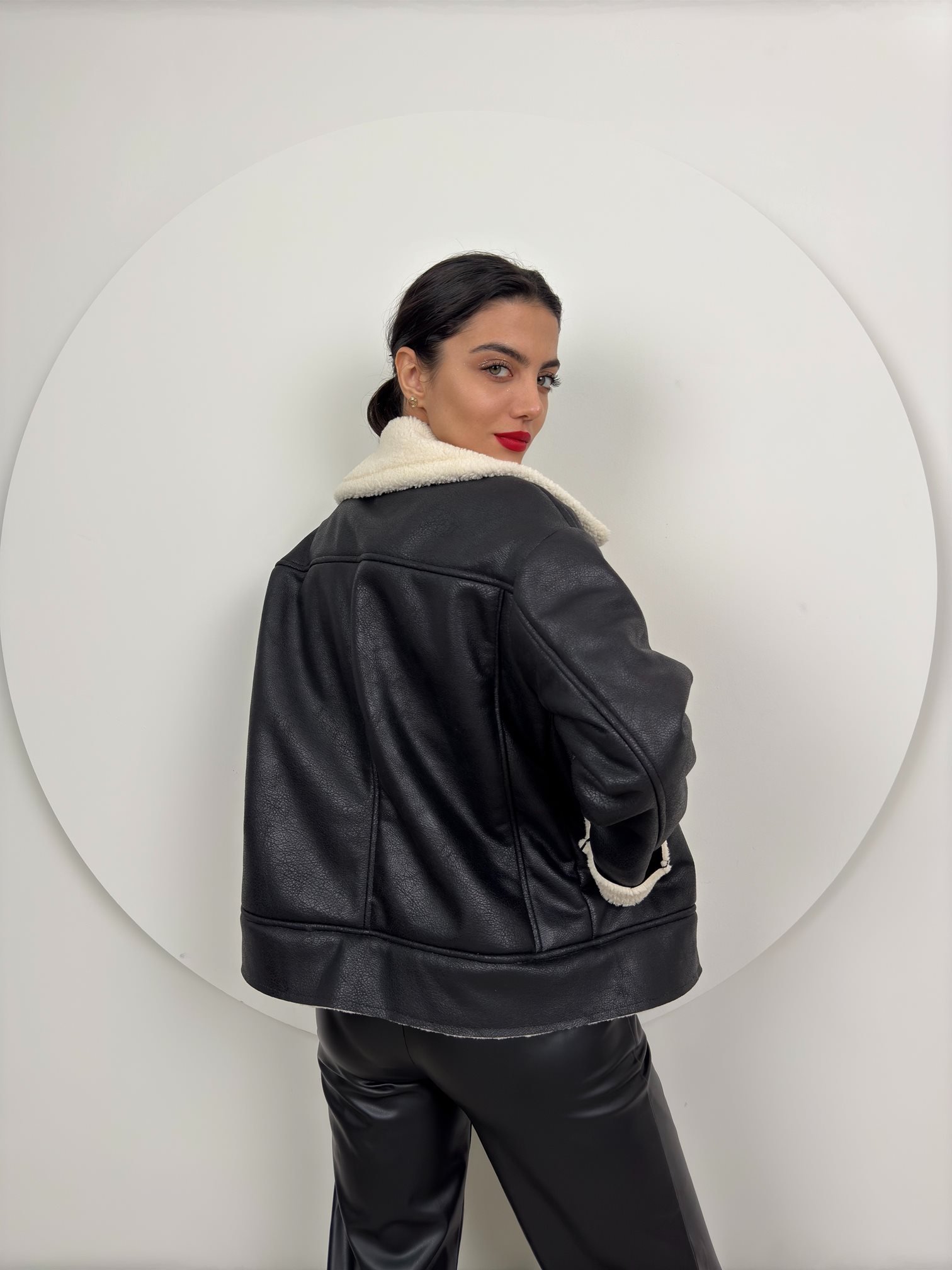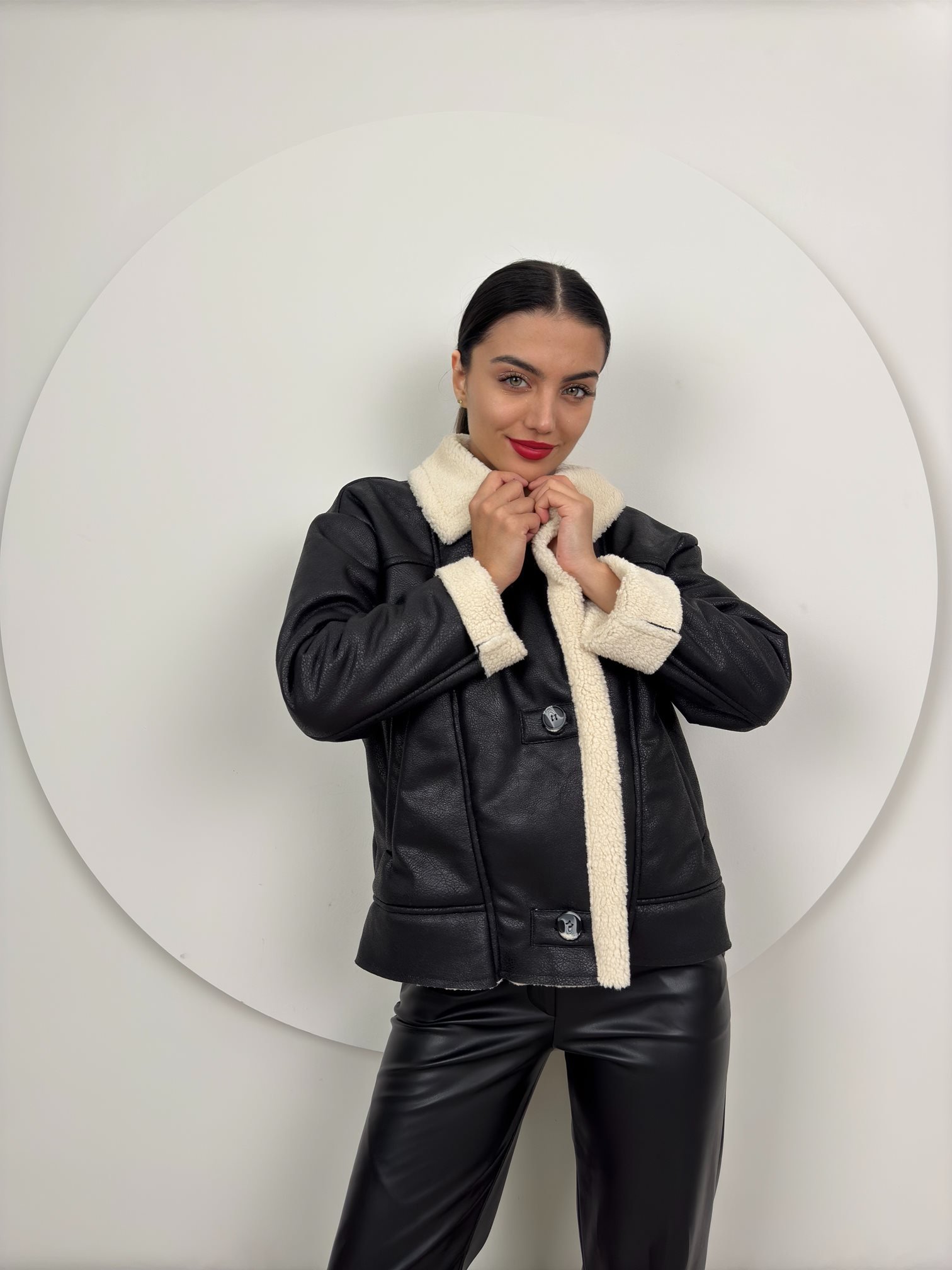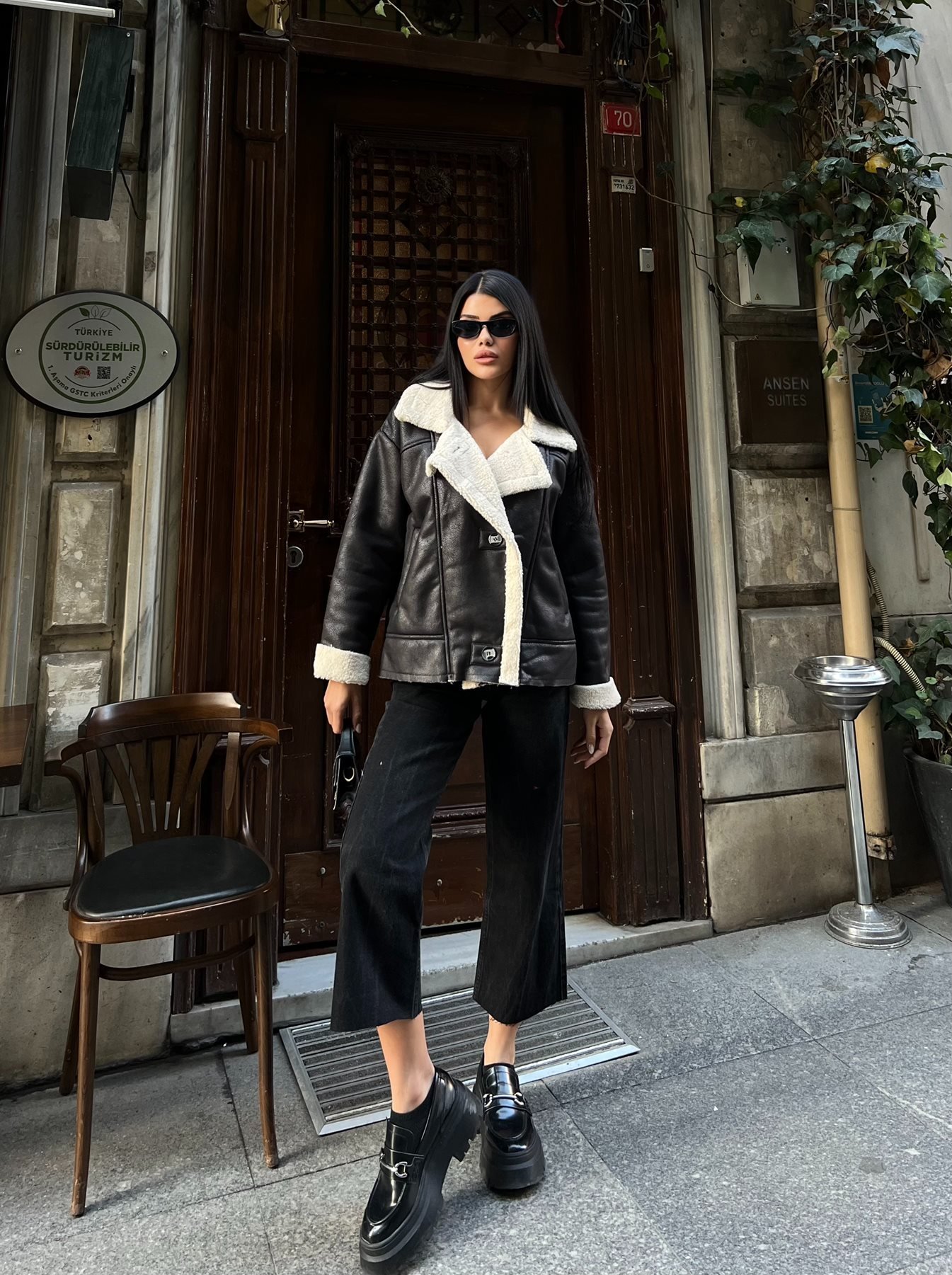 1077 OVERSİZE PELUŞ KABAN BLACK - SİYAH