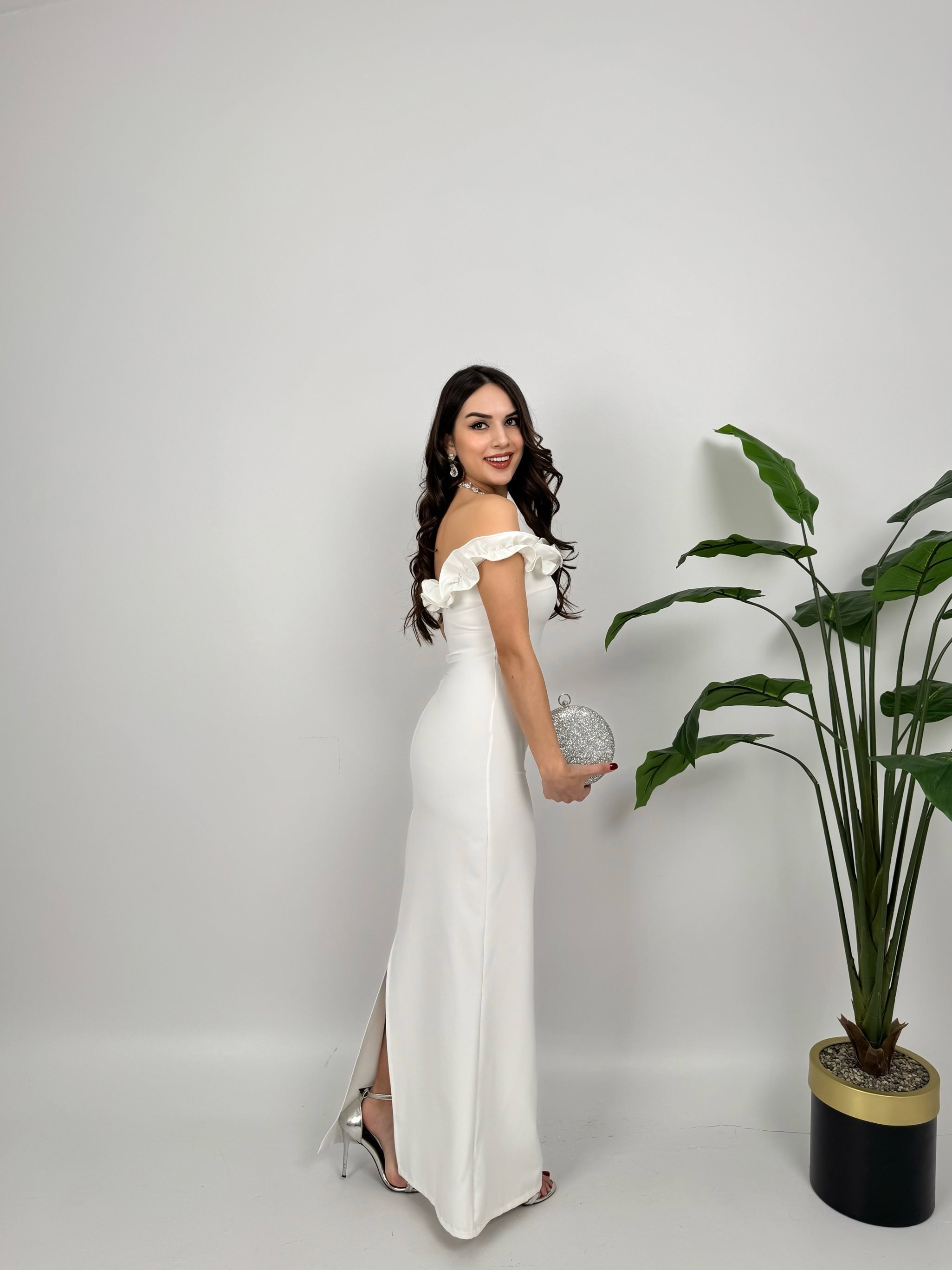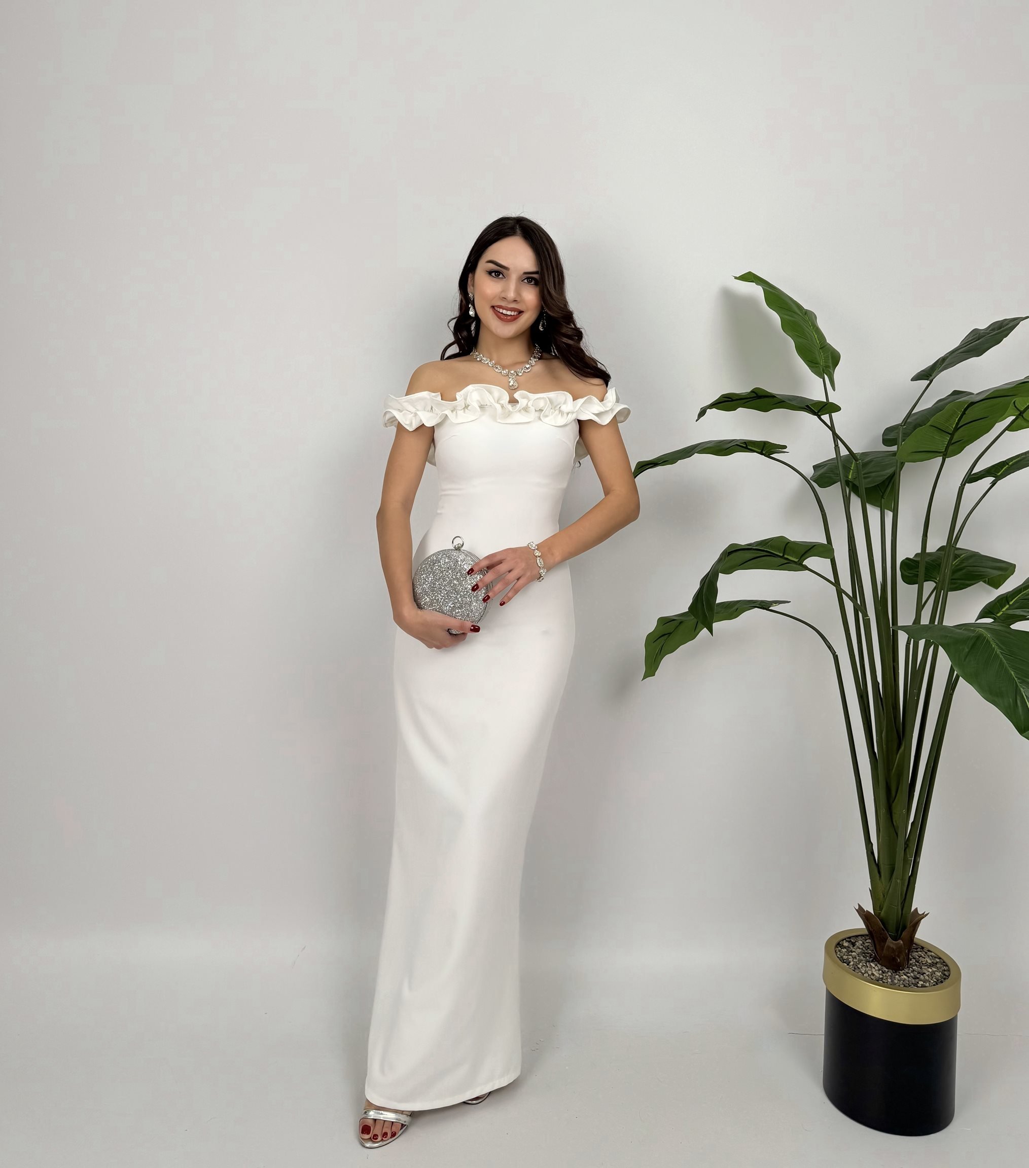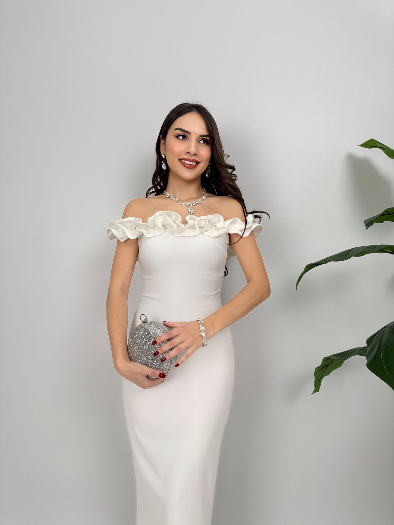 3021 GÖĞÜS BÜZGÜLÜ ELBİSE WHİTE - BEYAZ