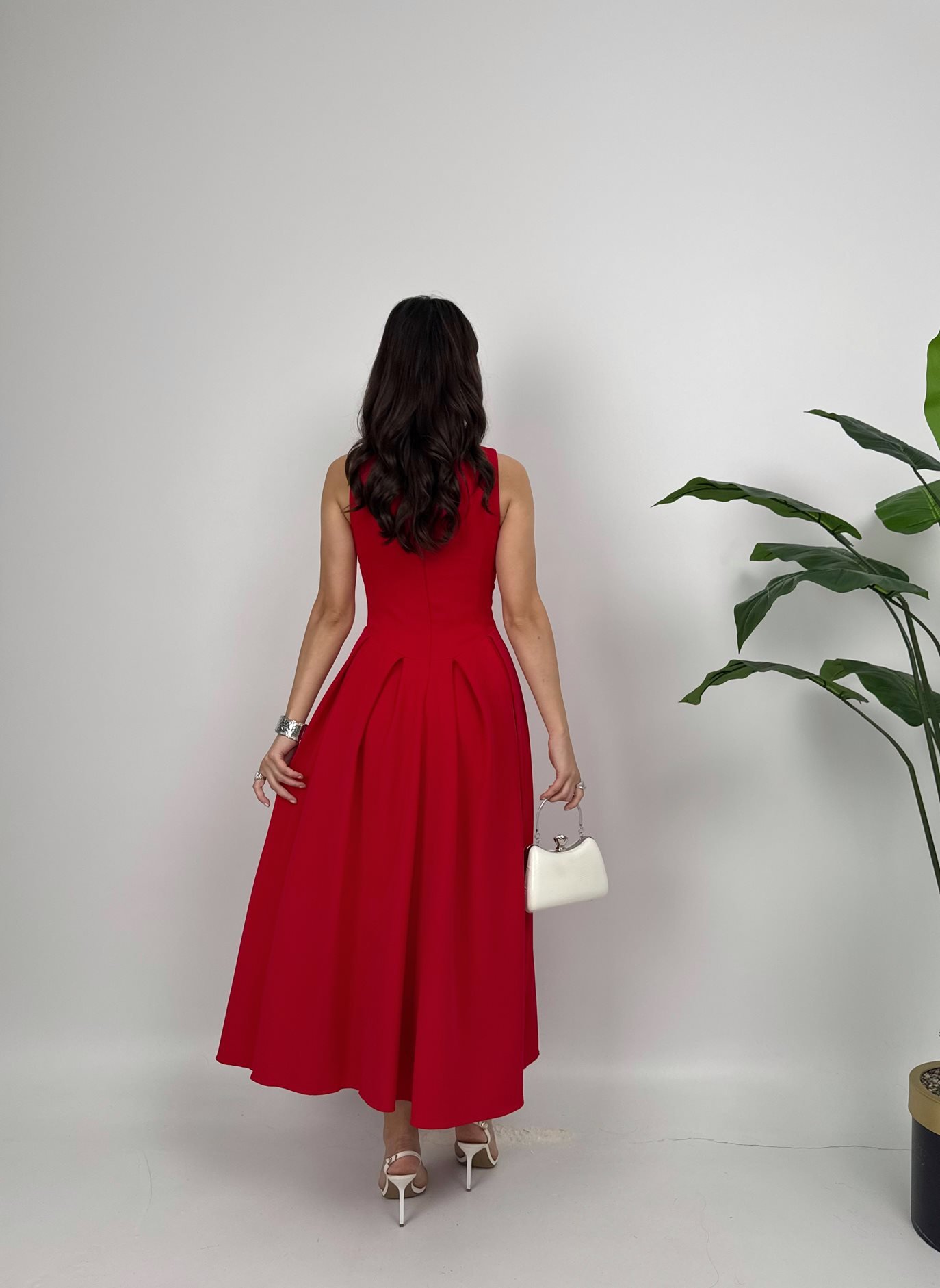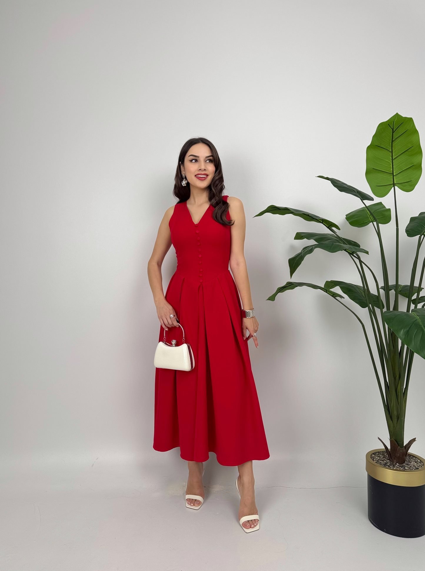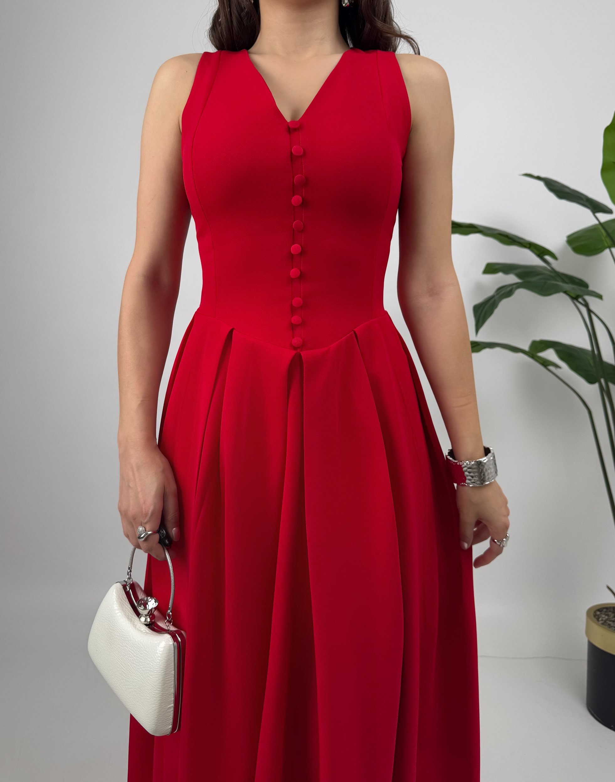 3031 KOLSUZ ÖNDEN DÜĞMELİ ELBİSE RED - KIRMIZI