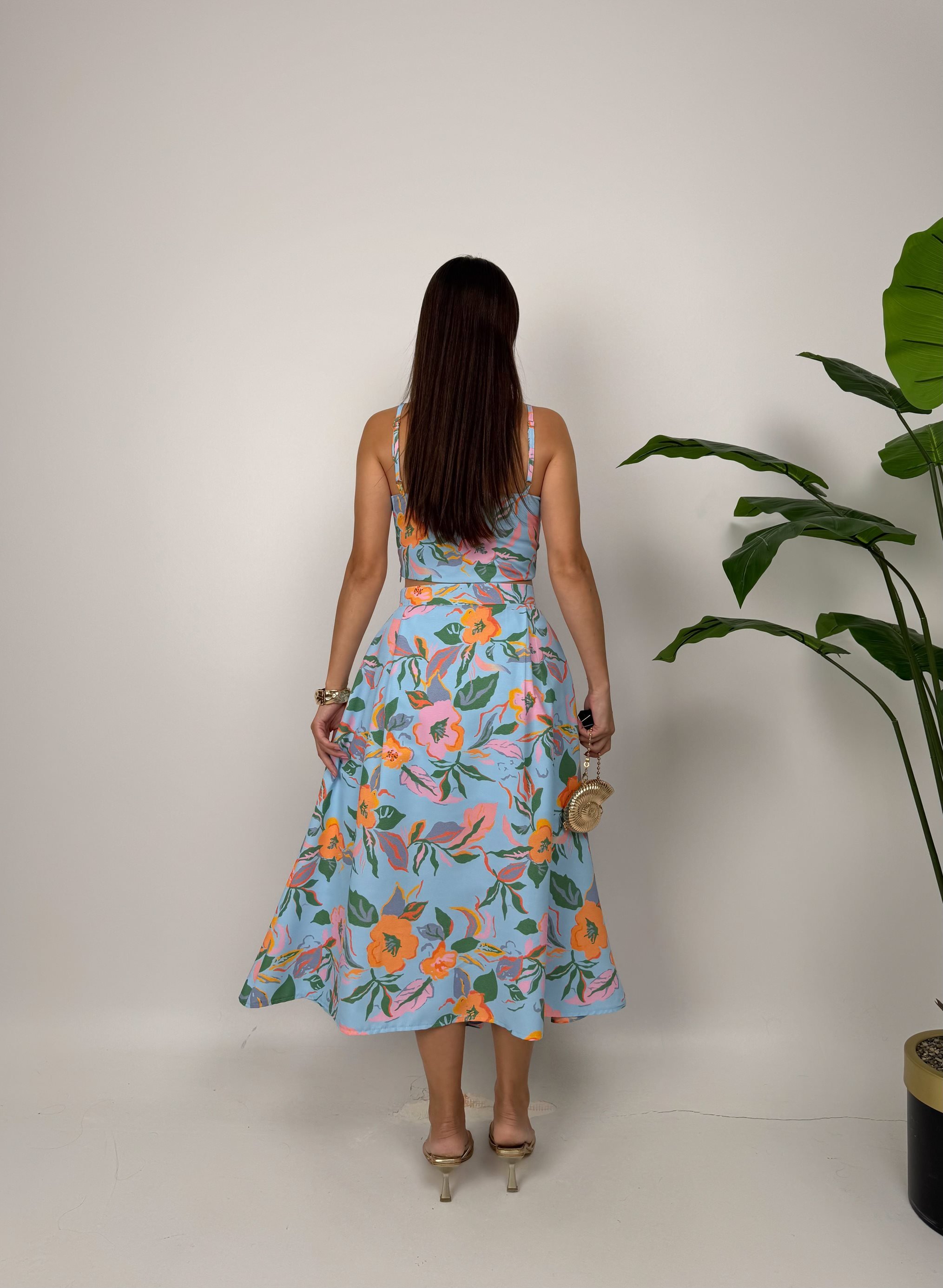 3040 DESENLİ ELBİSE BLUE - MAVİ