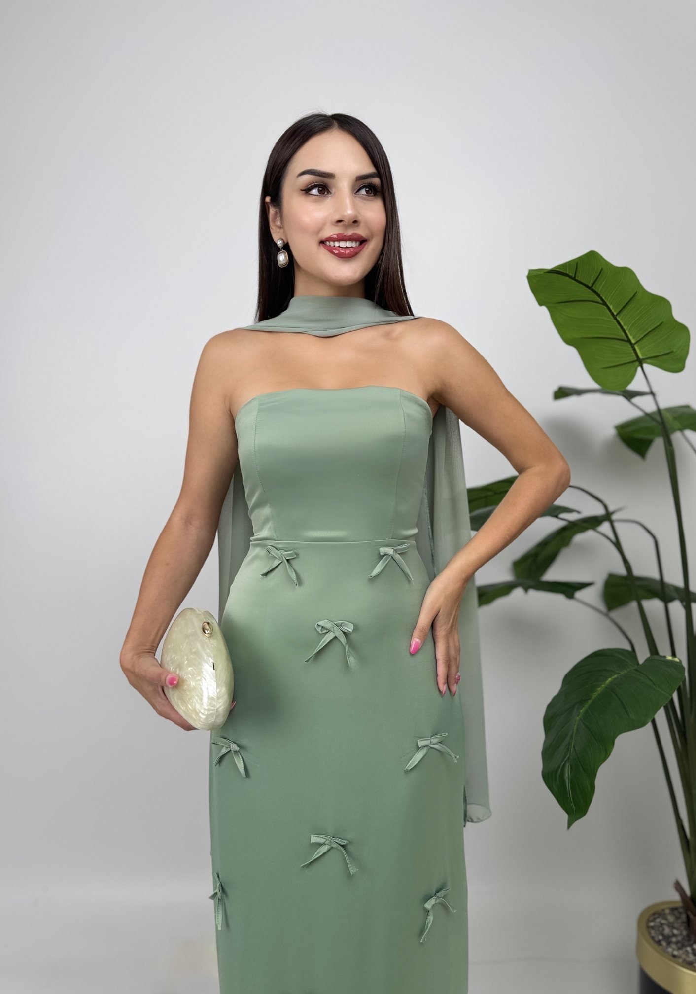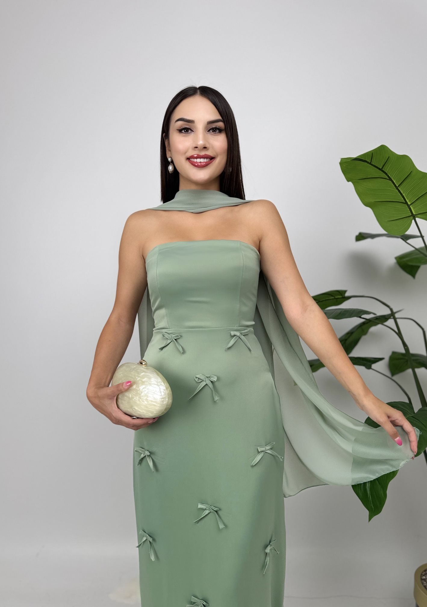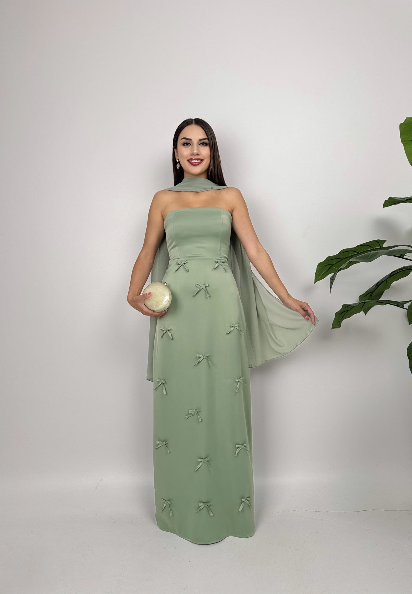 3060 SATEN KURDELELİ ELBİSE GREEN - YEŞİL
