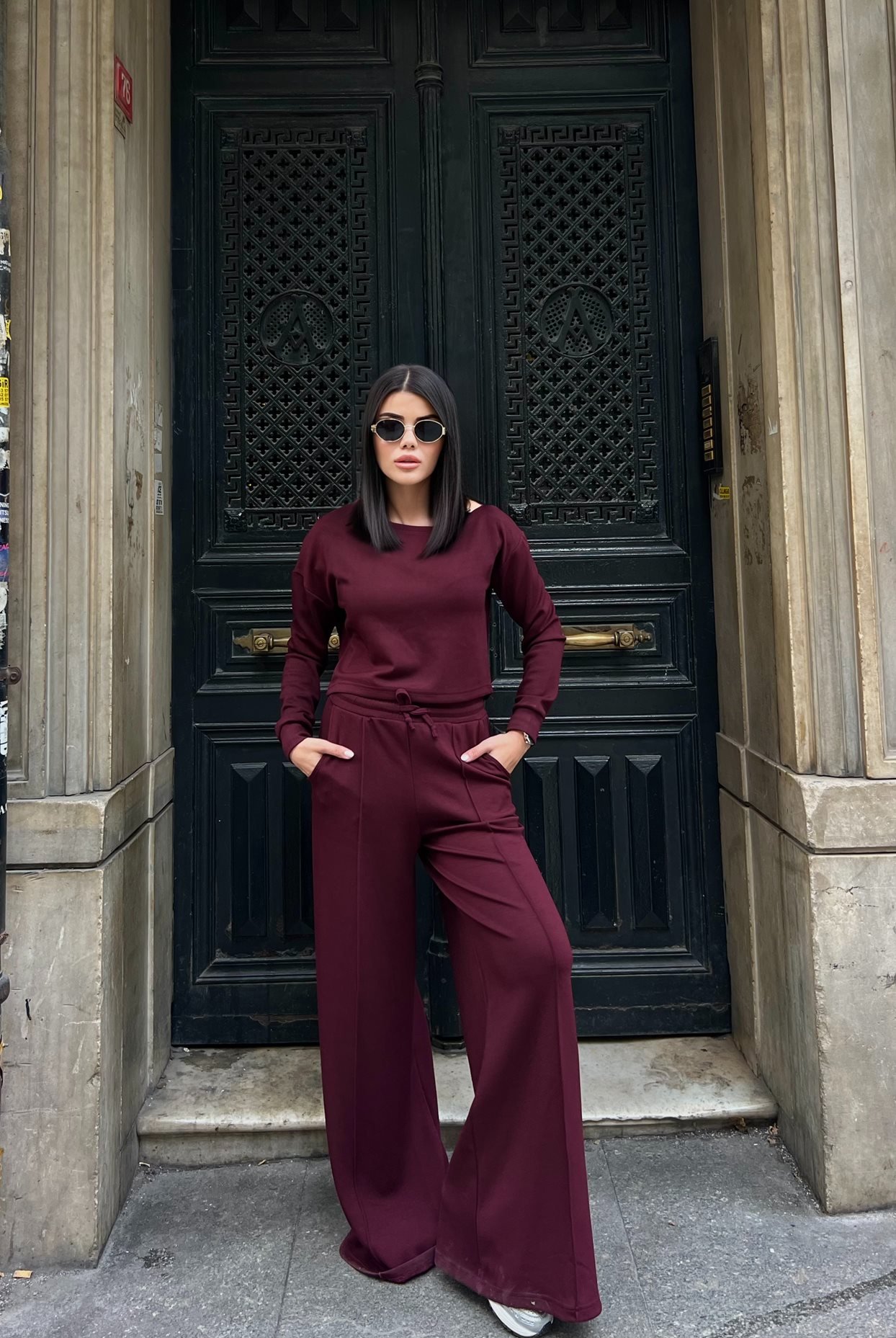 3086 PANTALONLU TAKIM BURGUNDY - BORDO