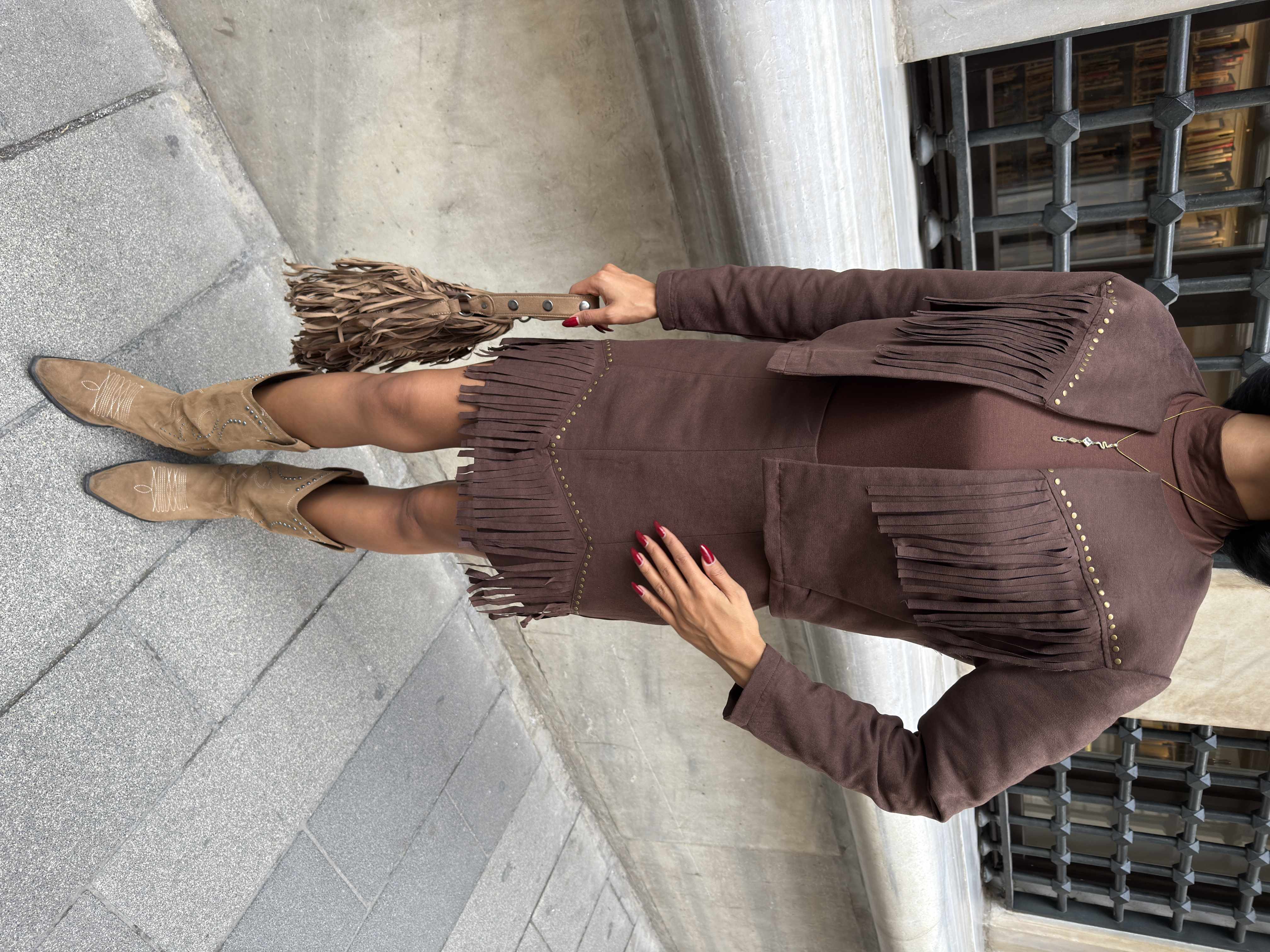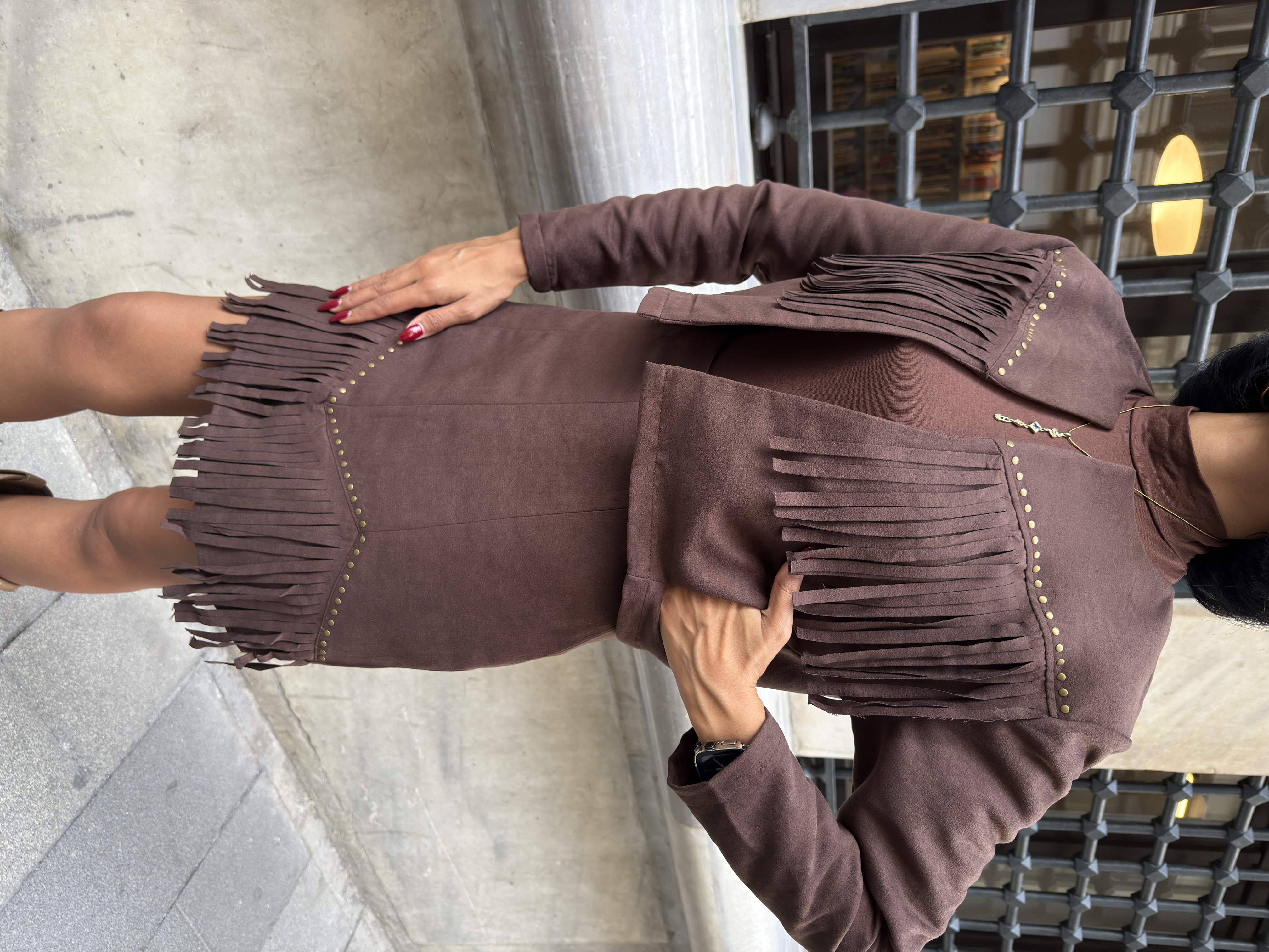 3100 ÇEKETLİ SUET TAKIM BROWN - KAHVE