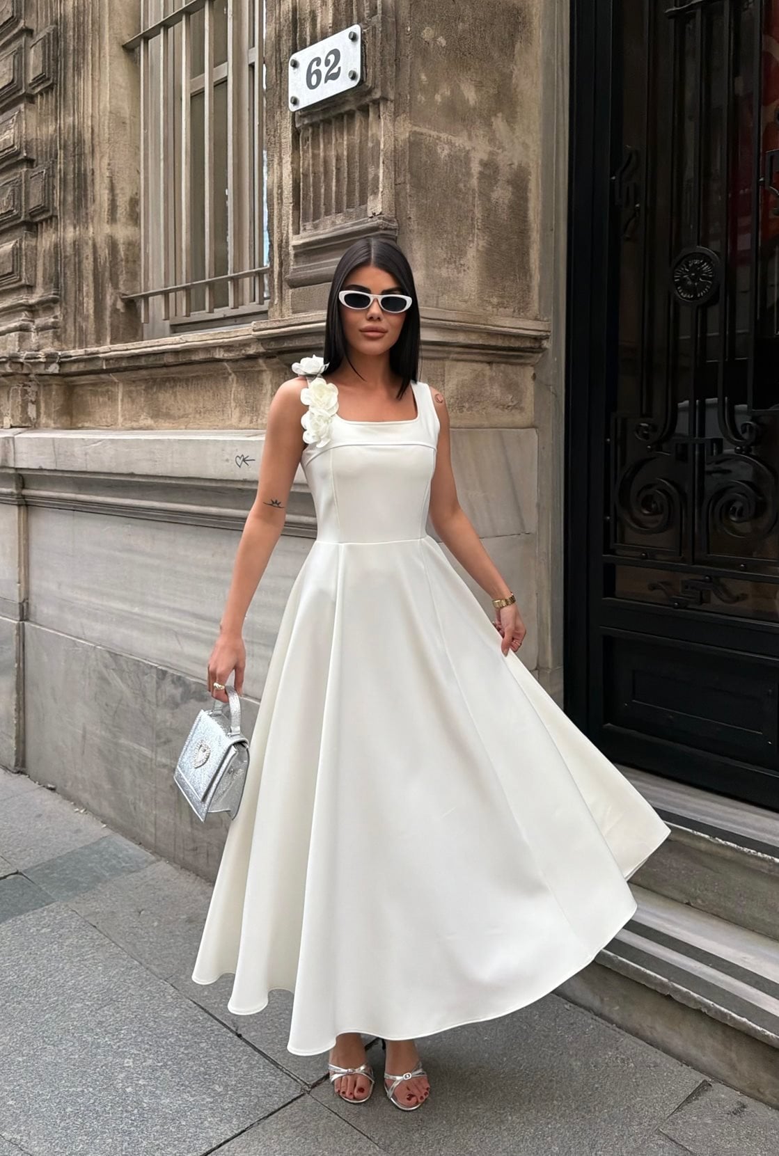 3124 KEMERLİ ELBİSE WHİTE - BEYAZ
