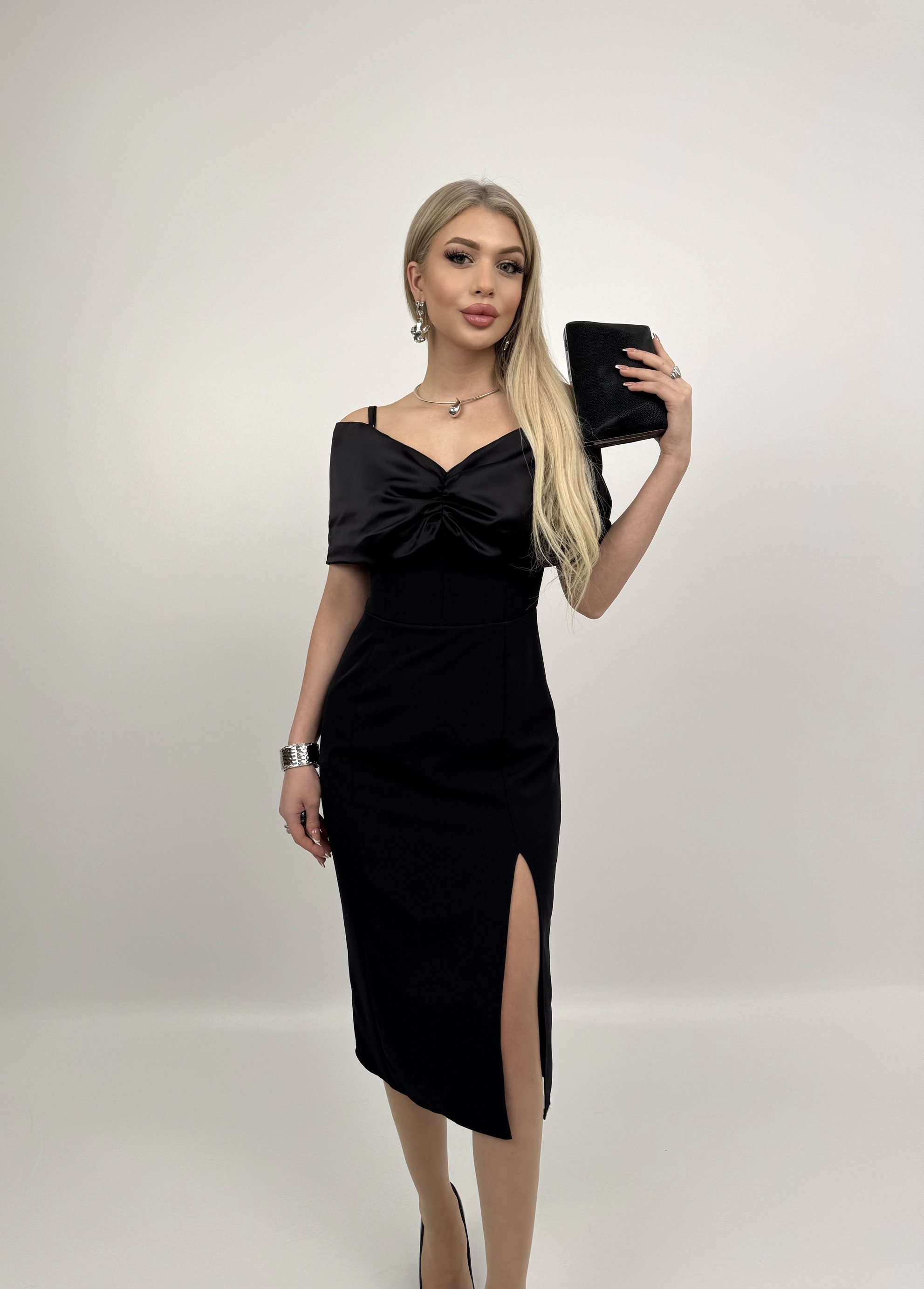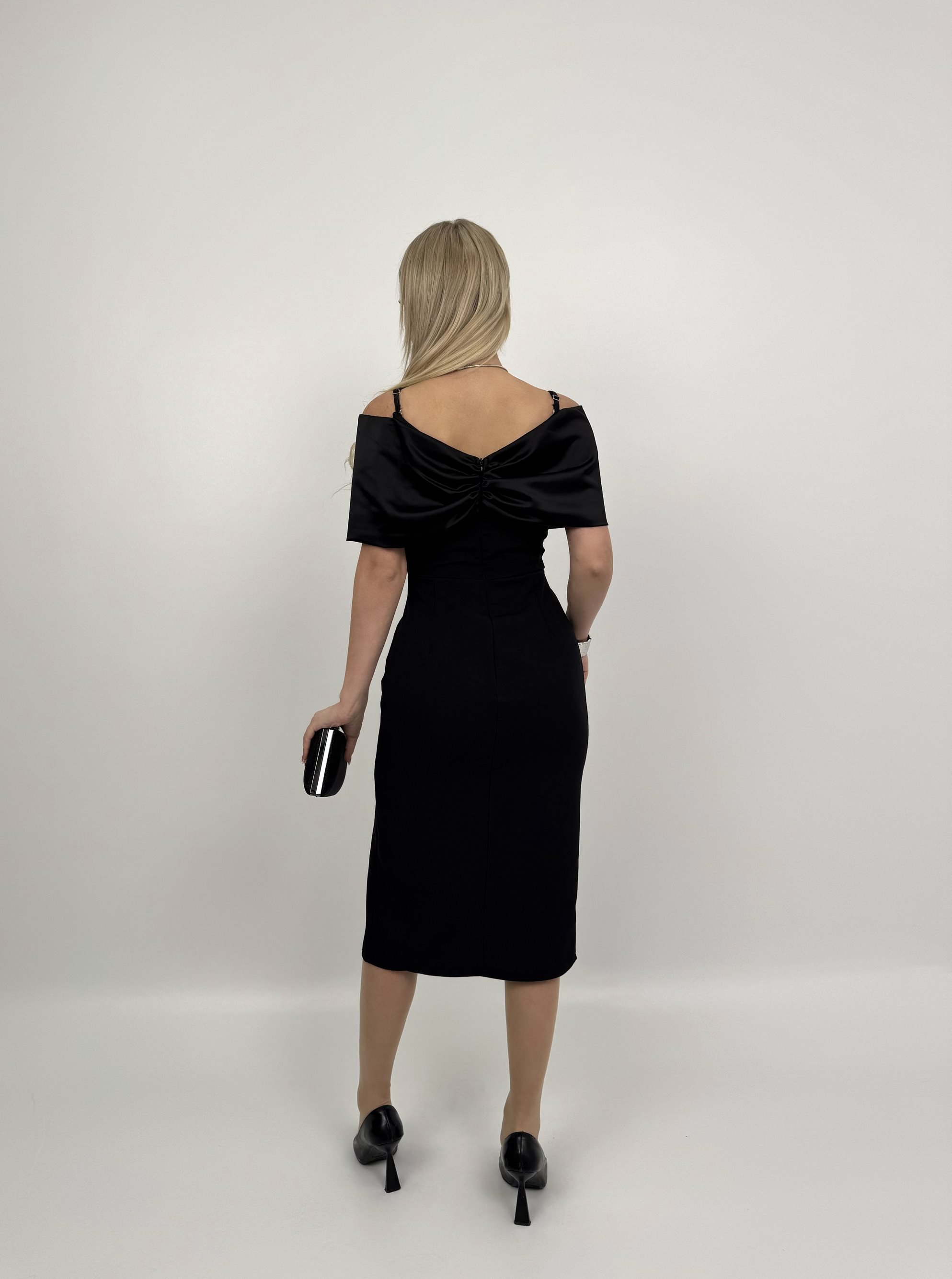 4002 MADONNA ZARA SATEN YAKA YIRTMAÇLI ELİSE BLACK - SİYAH