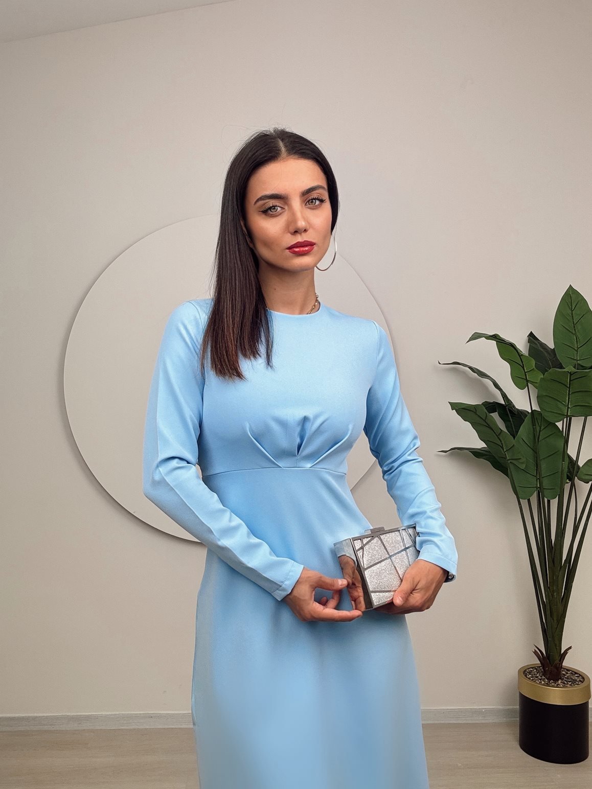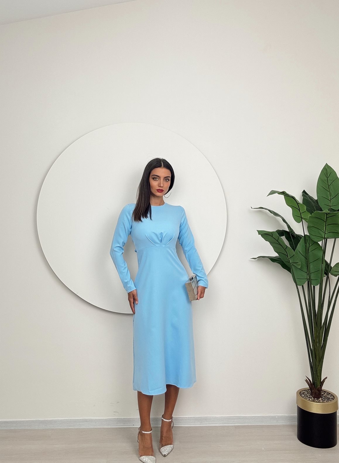 1011 ROBA PİLE ELBİSE BLUE - MAVİ
