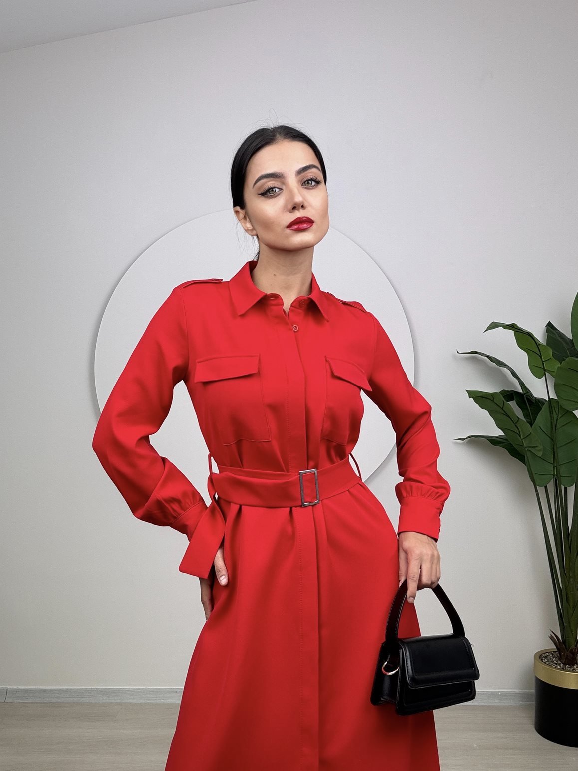 1012 CEPLİ BAĞLAMALI ELBİSE RED - KIRMIZI