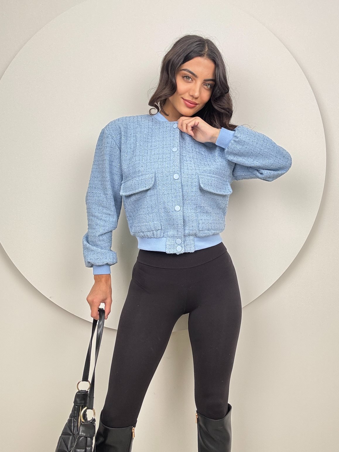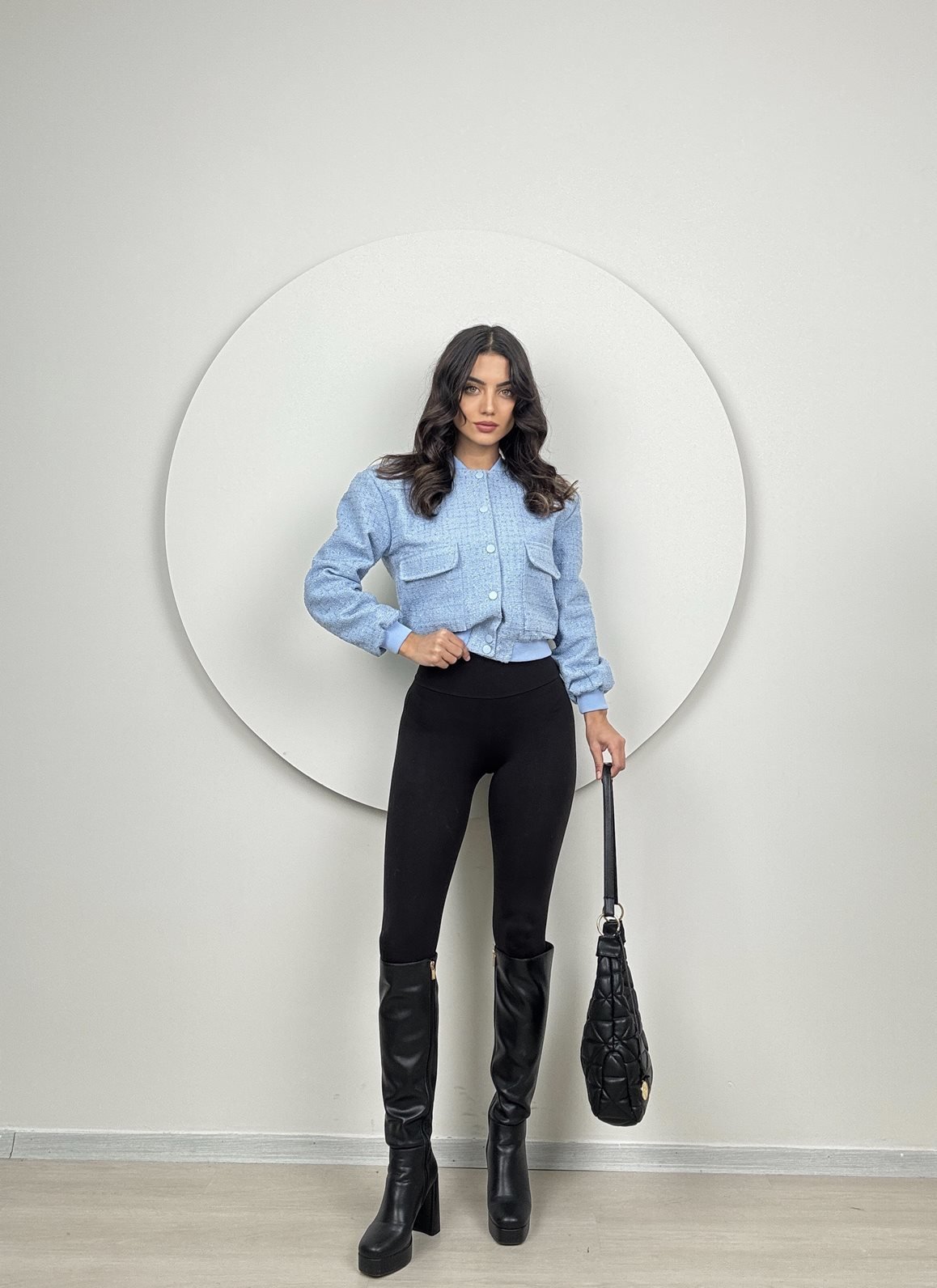 1034 SİMLİ ŞANEL BOMBER CEKET BLUE - MAVİ