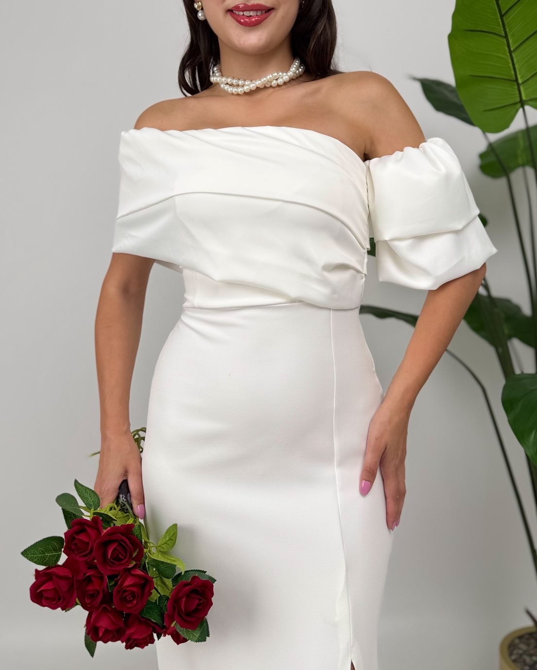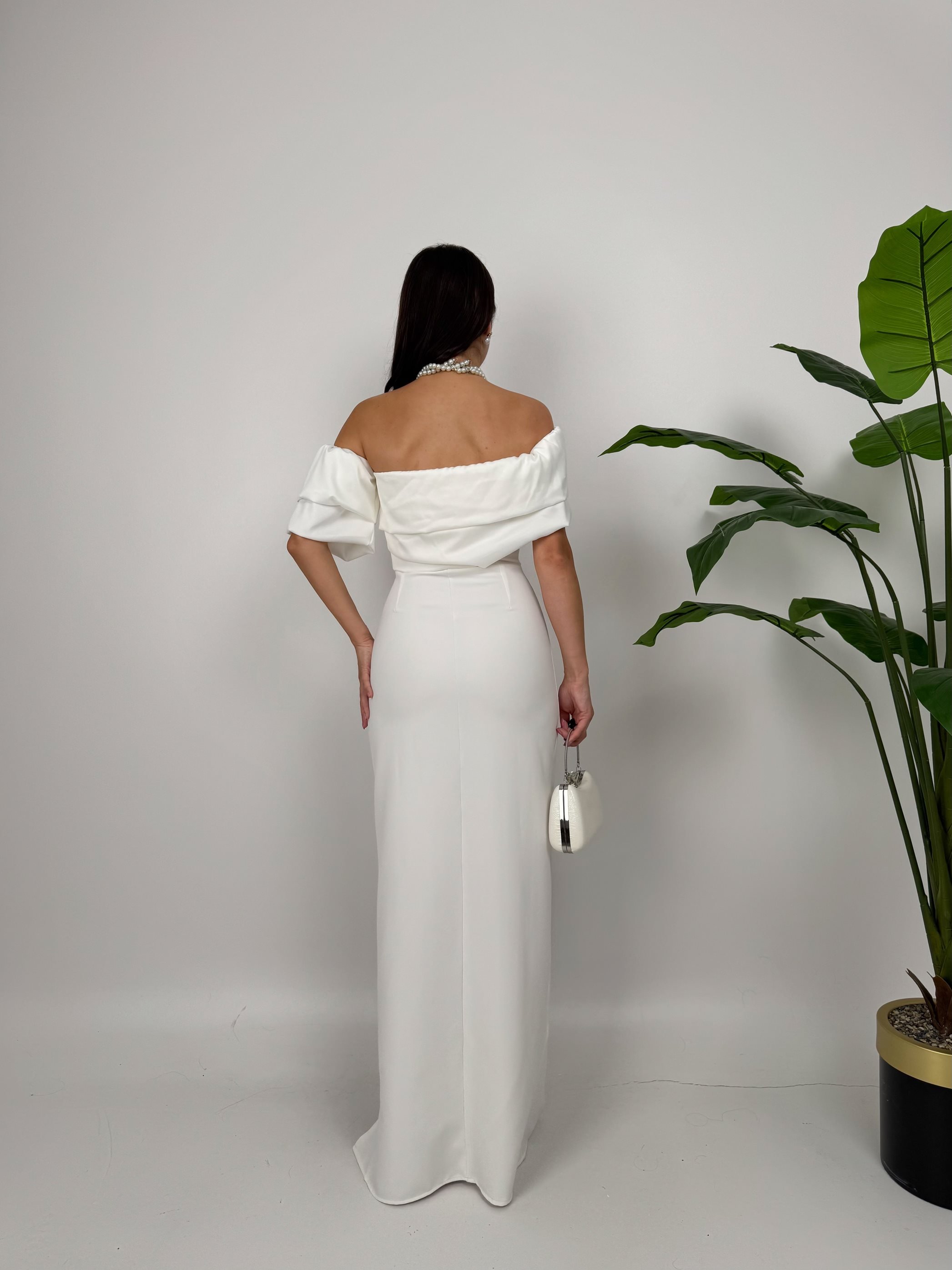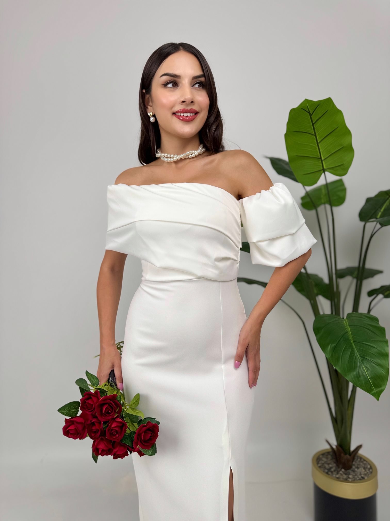 1035 GÖGÜS SATEN ELBİSE WHİTE - BEYAZ