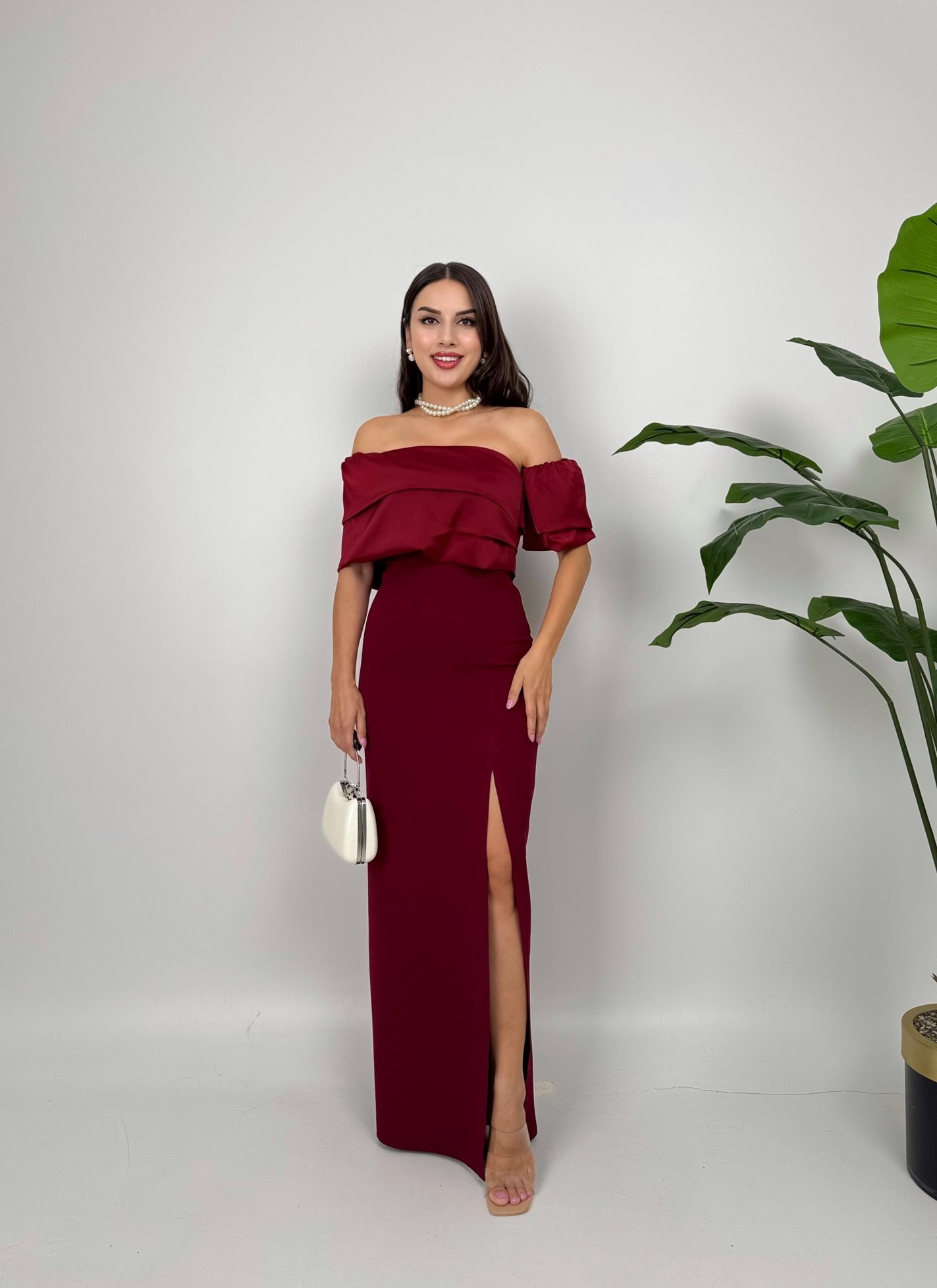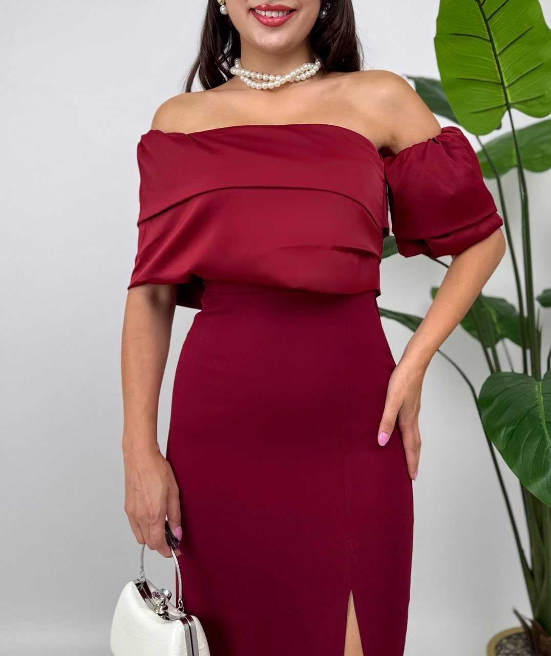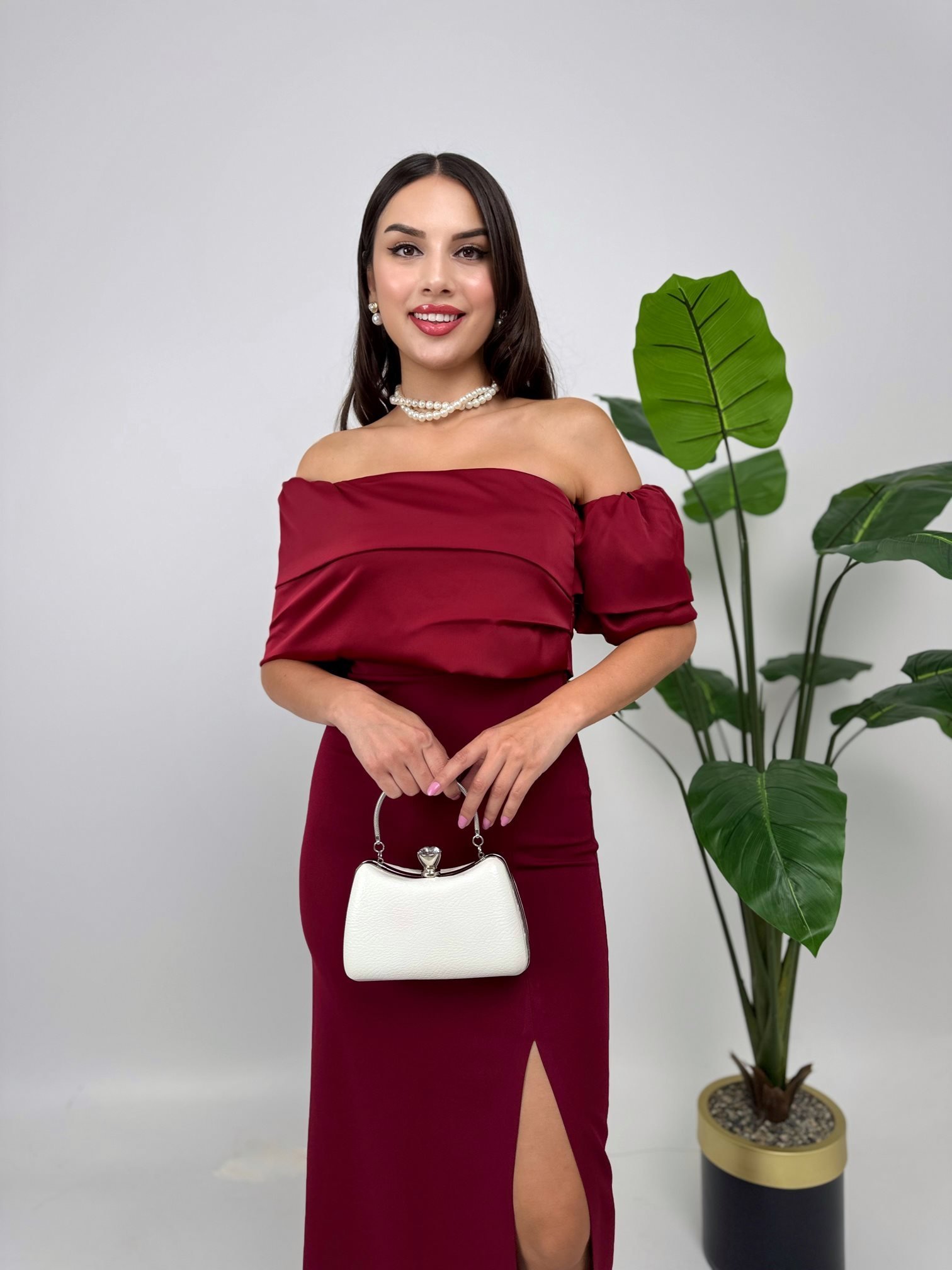 1035 GÖGÜS SATEN ELBİSE BURGUNDY - BORDO