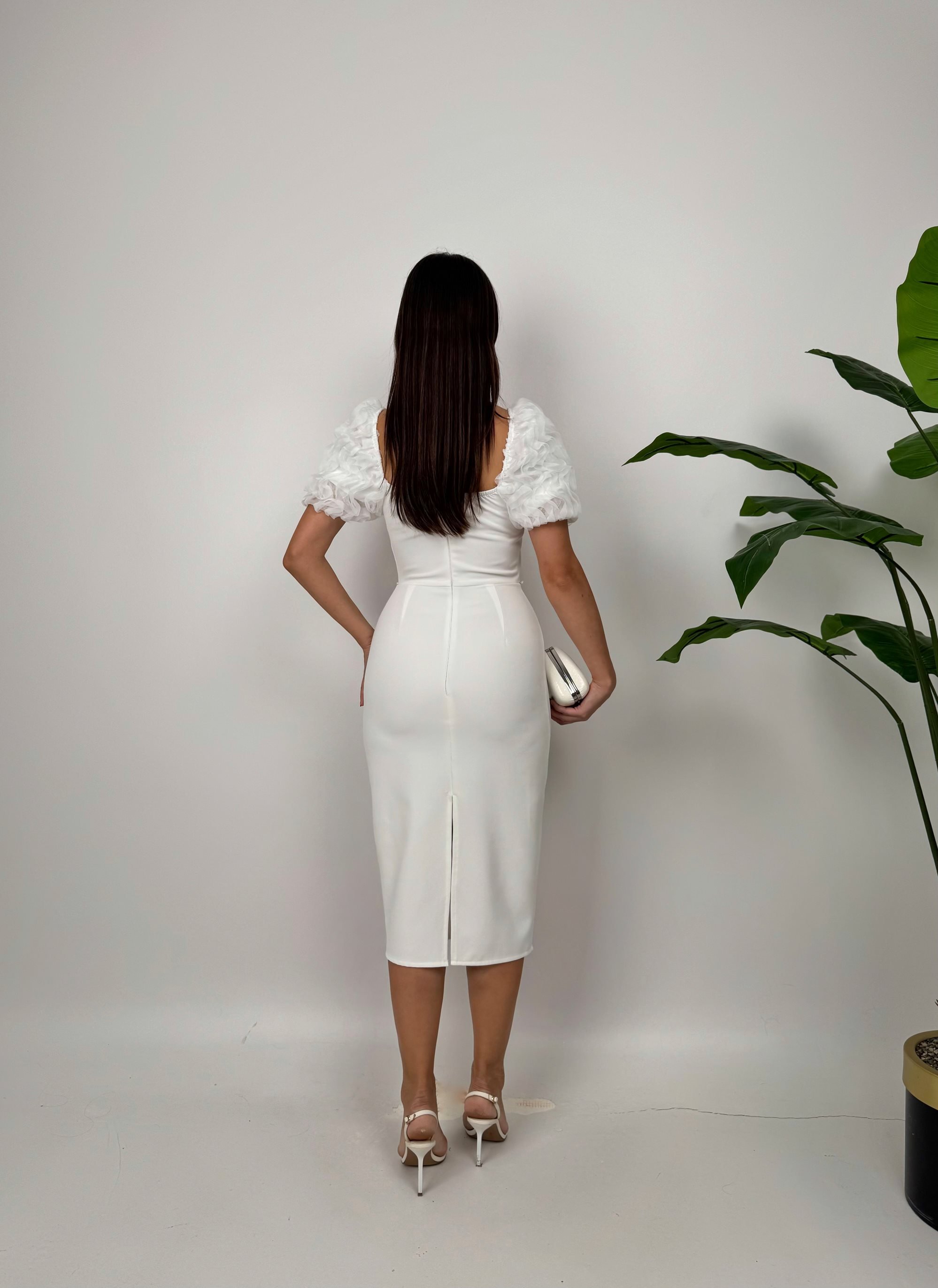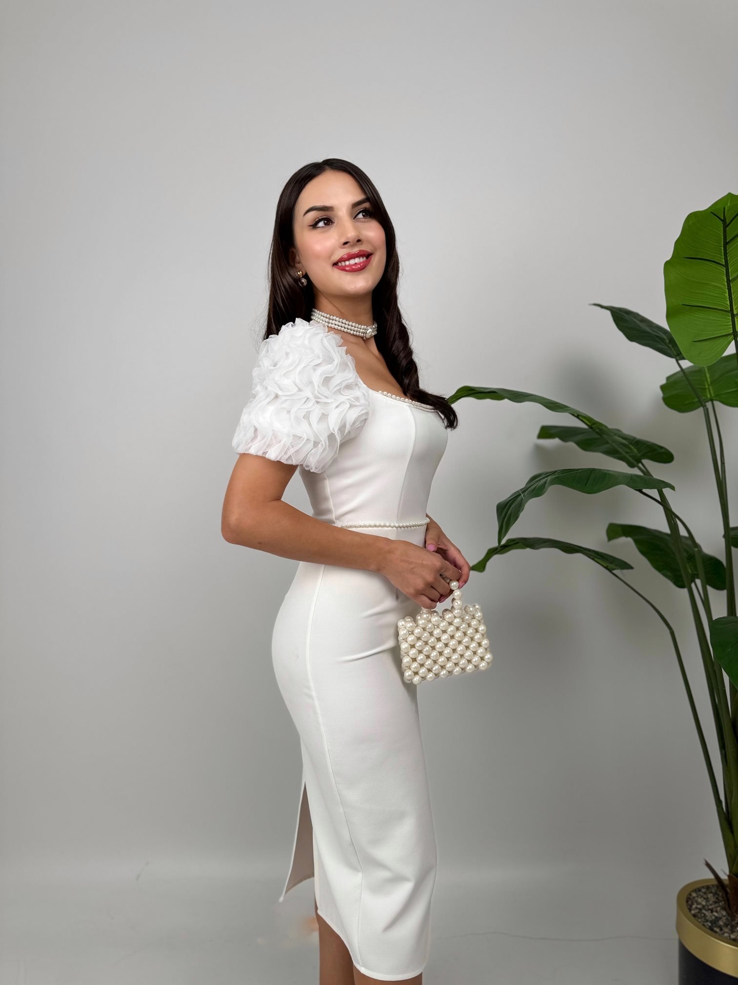 2051 KOLLAR İTHAL KUMAŞ İNCİ DEYAT ELBİSE WHİTE - BEYAZ