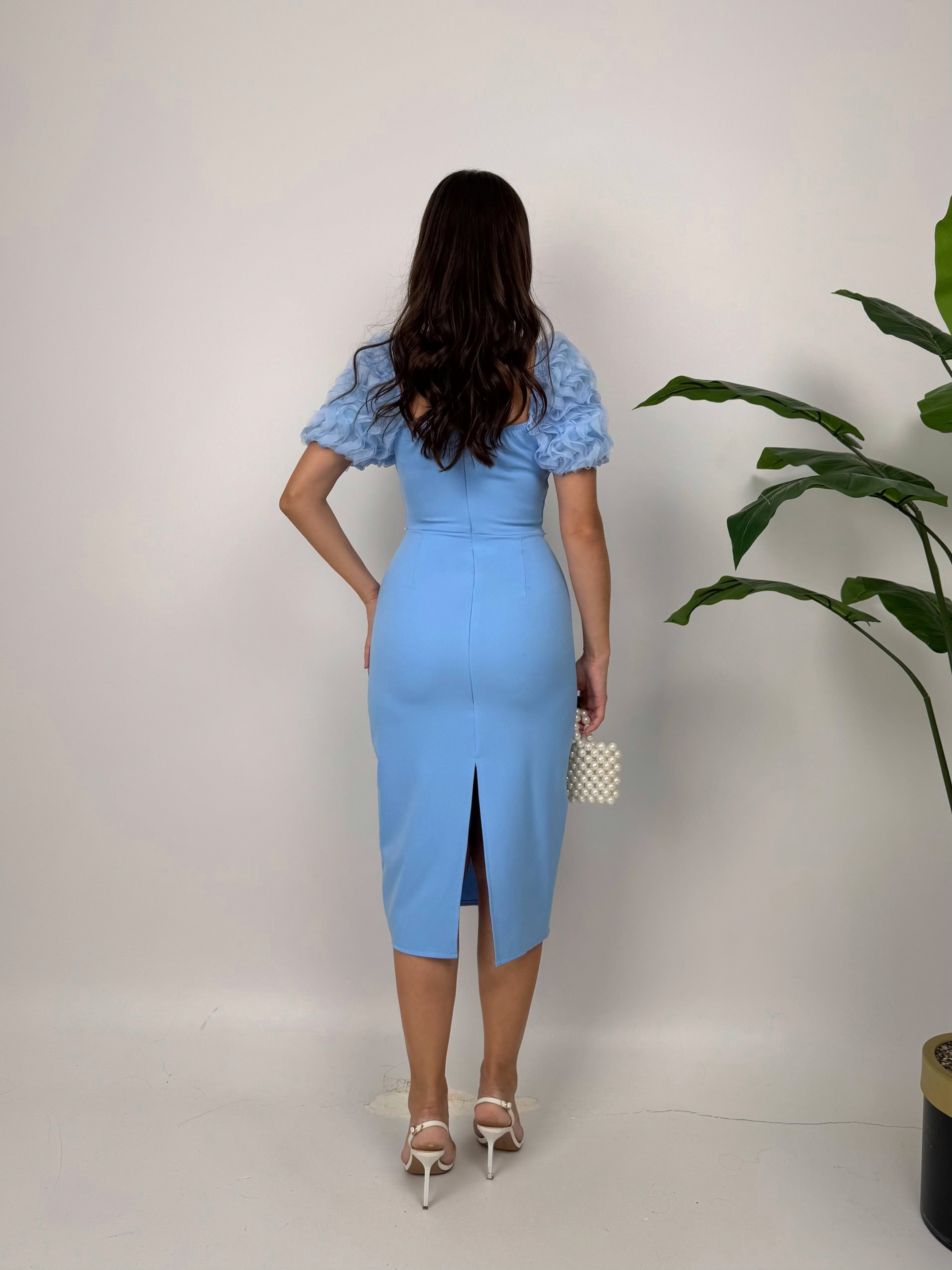 2051 KOLLAR İTHAL KUMAŞ İNCİ DEYAT ELBİSE BLUE - MAVİ