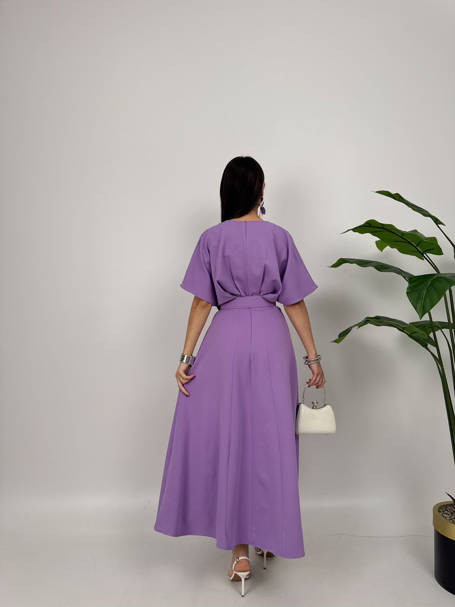 2056 ATLAS KUMAŞ KEMERLİ ELBİSE LİLAC - LİLA