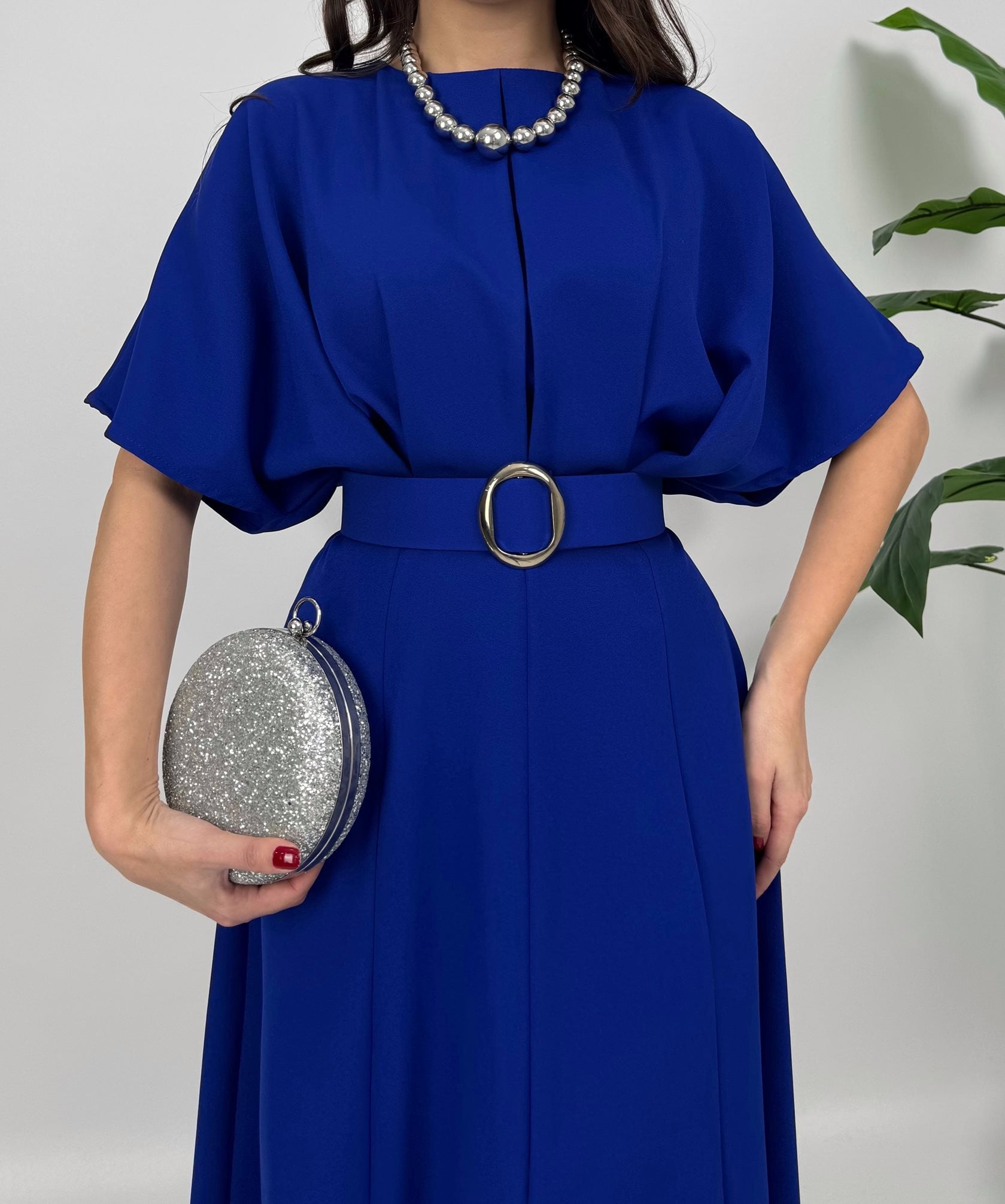 2056 ATLAS KUMAŞ KEMERLİ ELBİSE SAXE - SAX