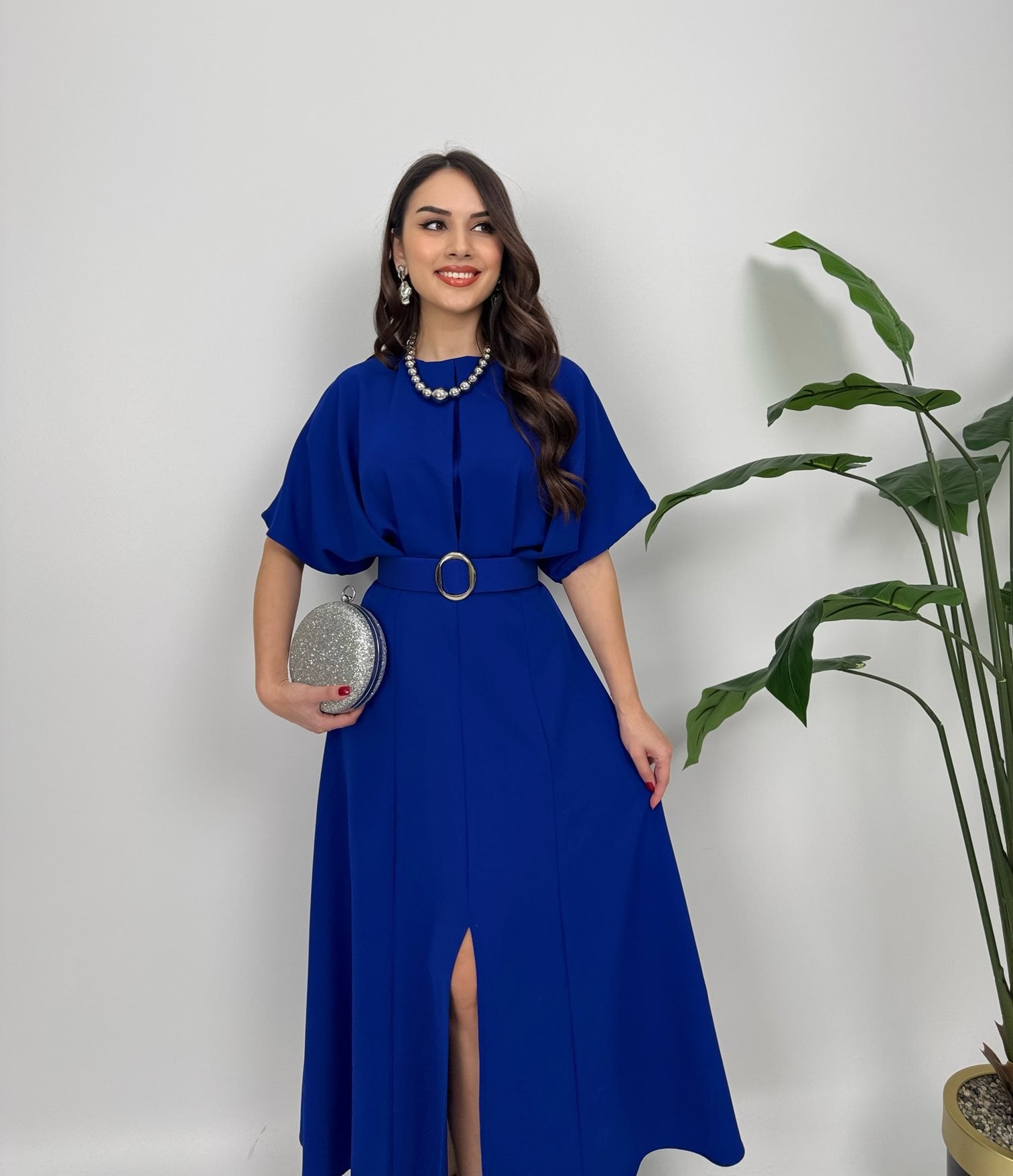 2056 ATLAS KUMAŞ KEMERLİ ELBİSE