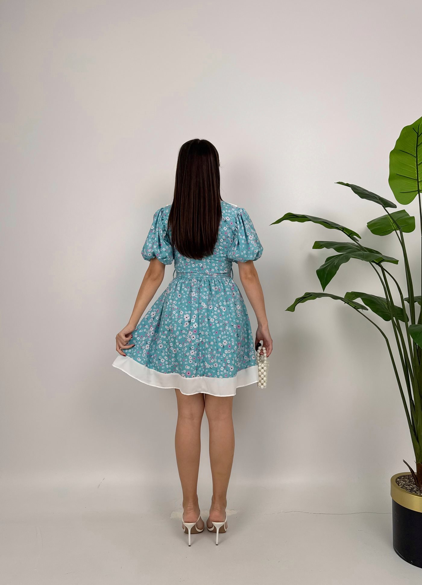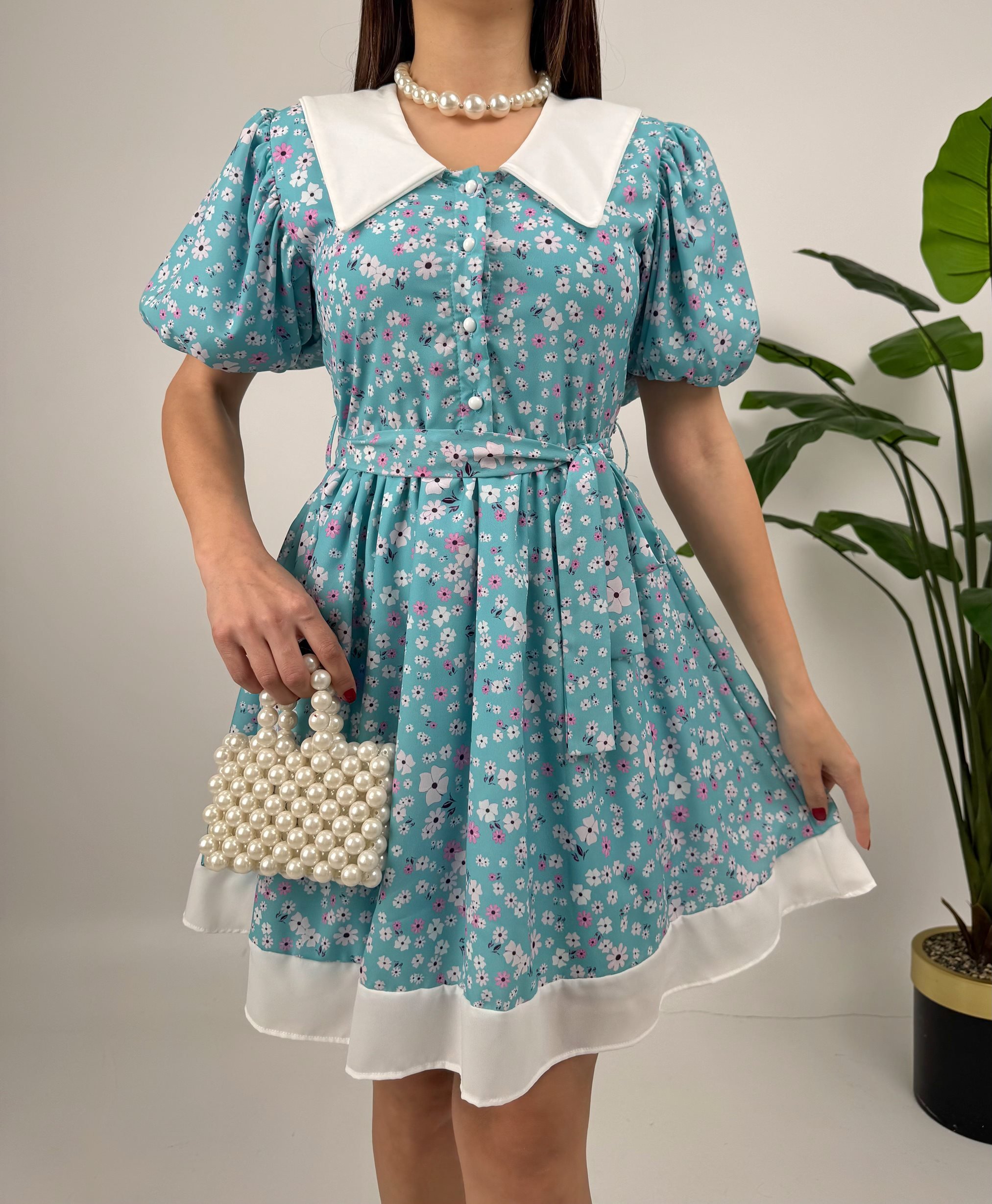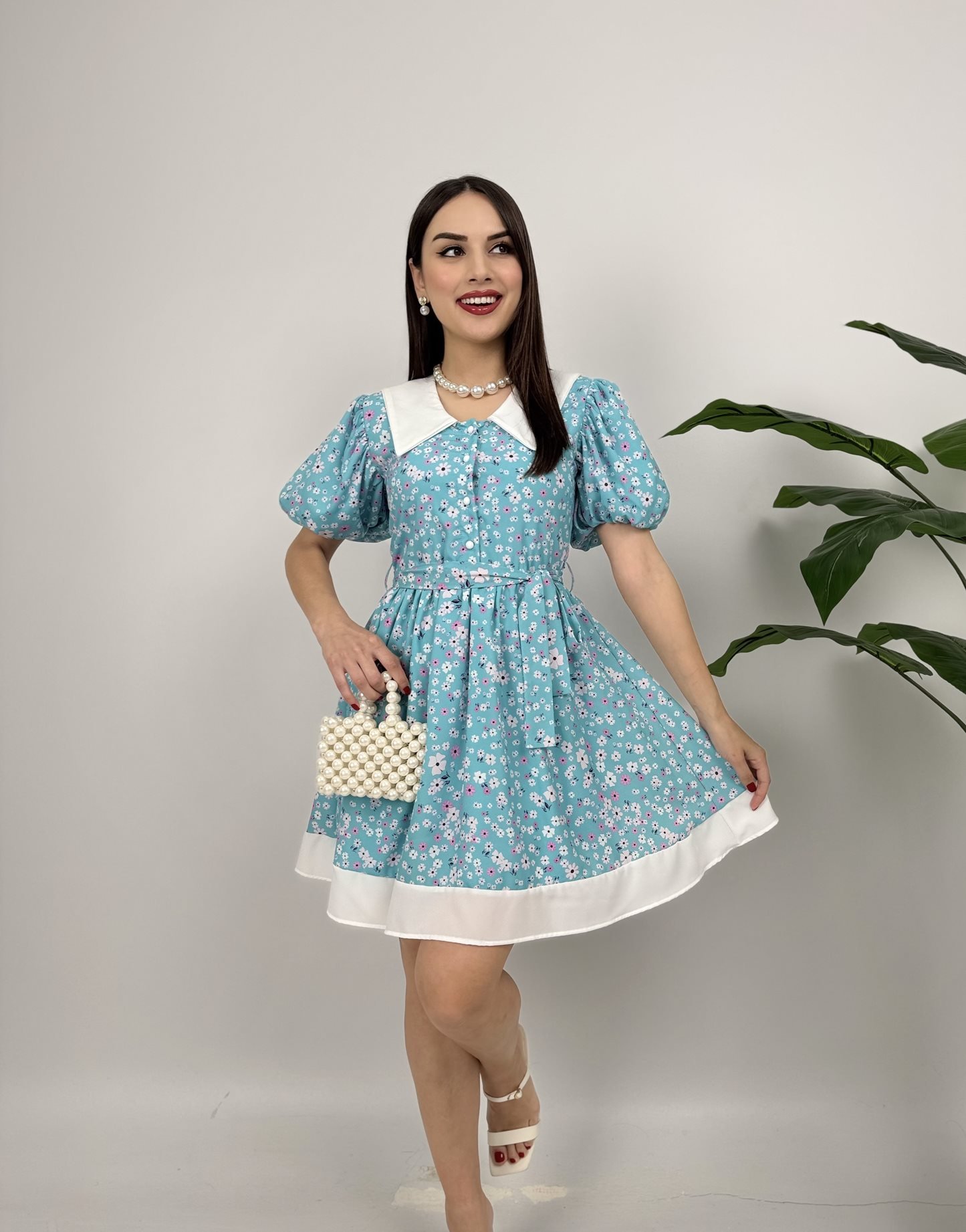 2088 YAKA DETAY KREP MİNİ ELBİSE BLUE - MAVİ