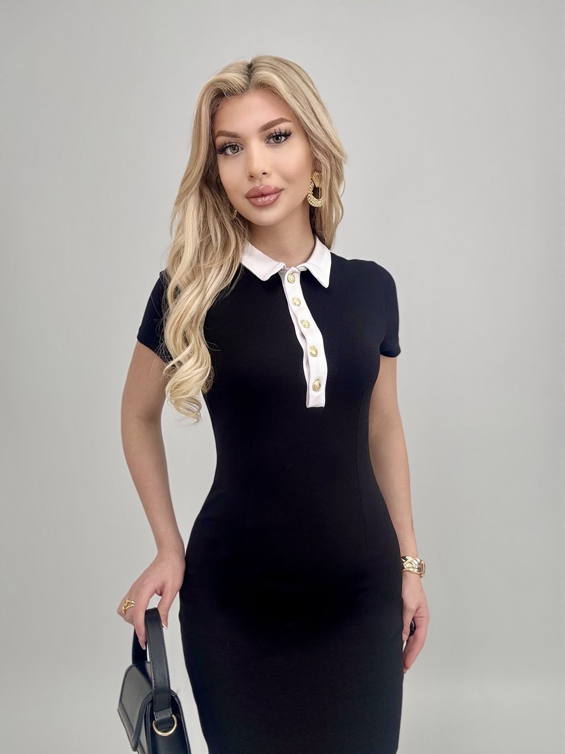 3002 POLO YAKA ELBİSE BLACK - SİYAH