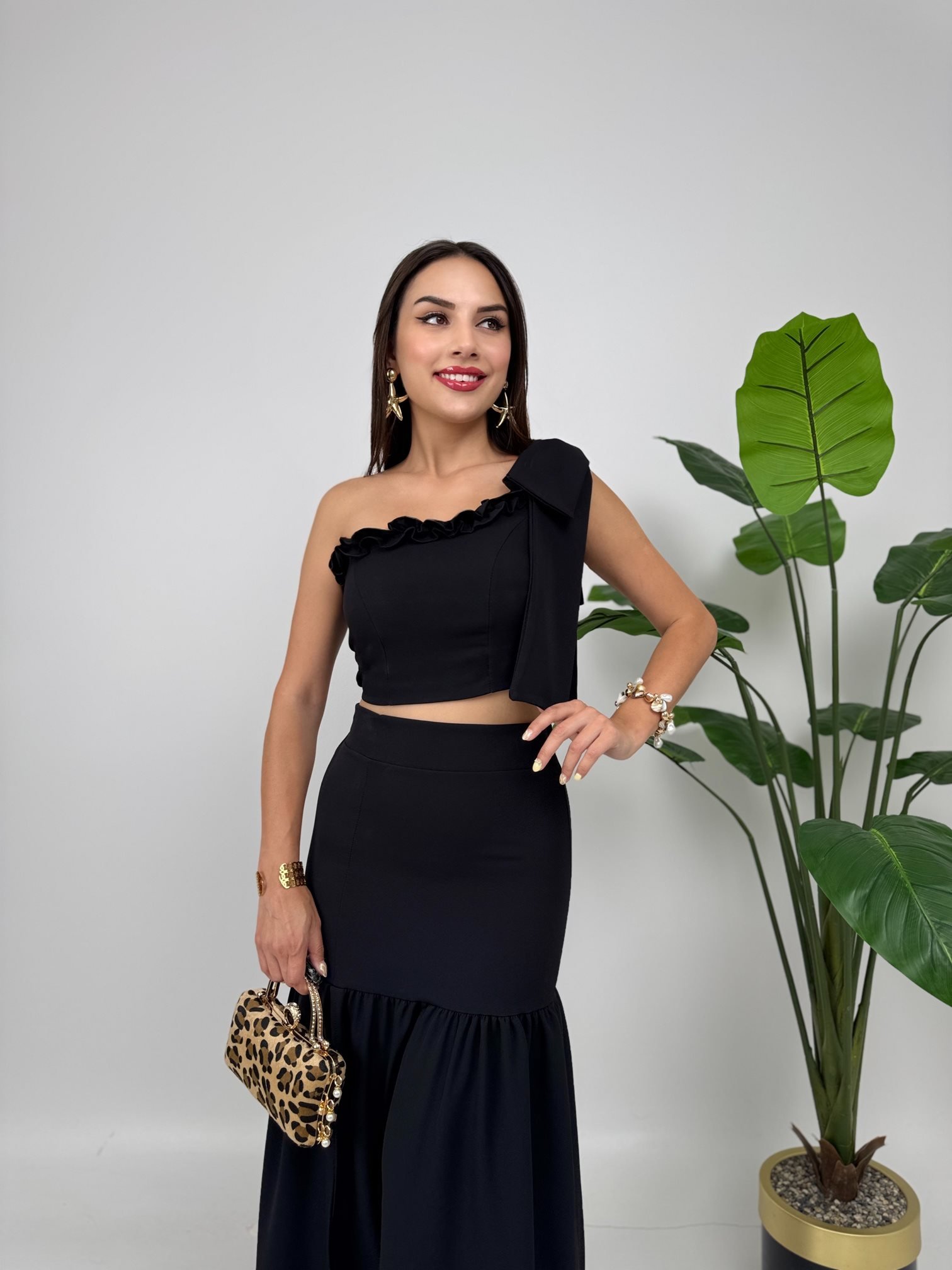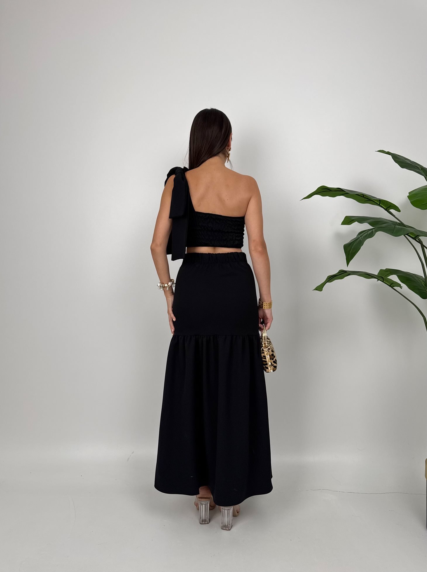 3011 GOĞUS FIRFIRLI ELBİSE BLACK - SİYAH