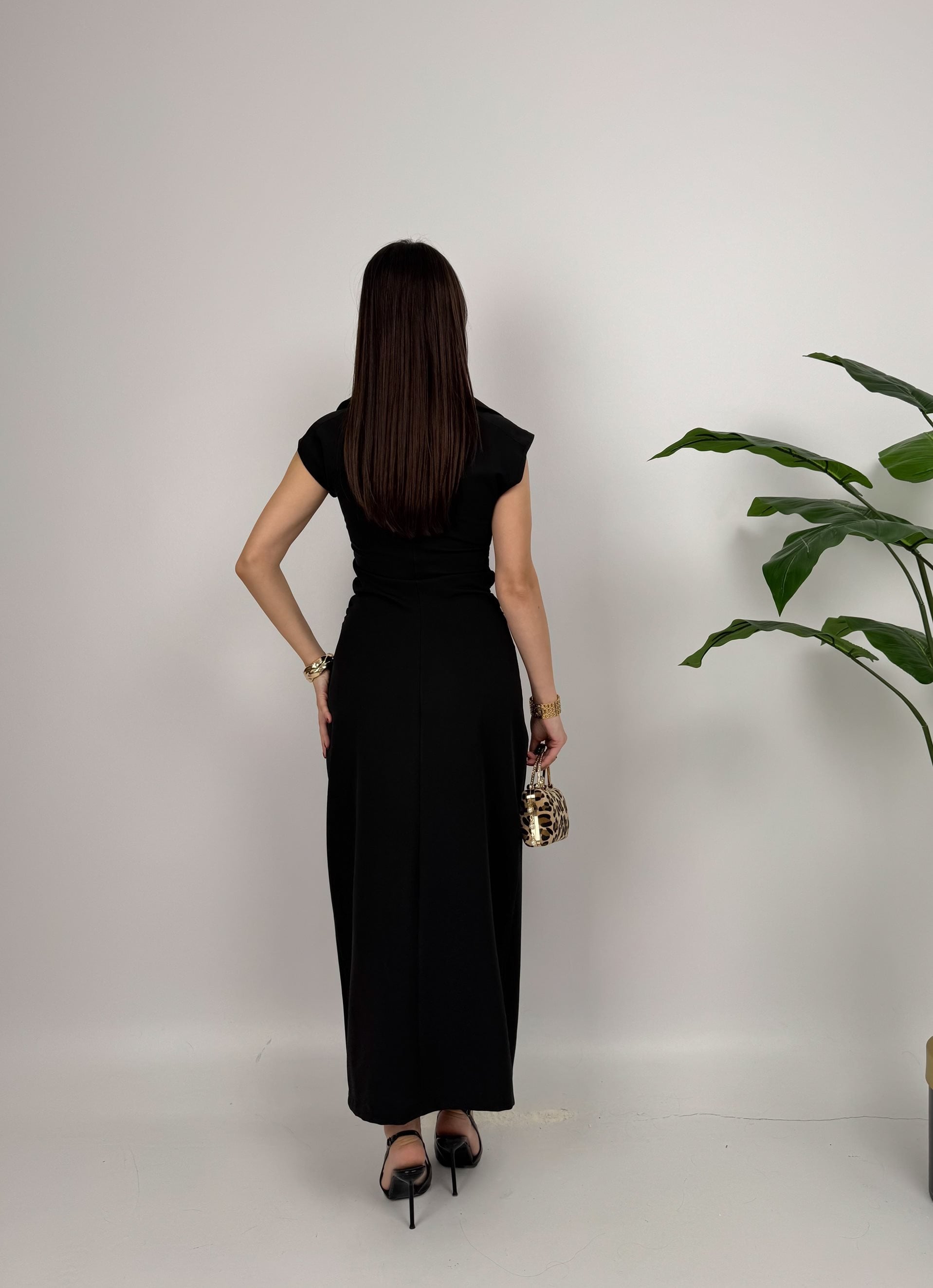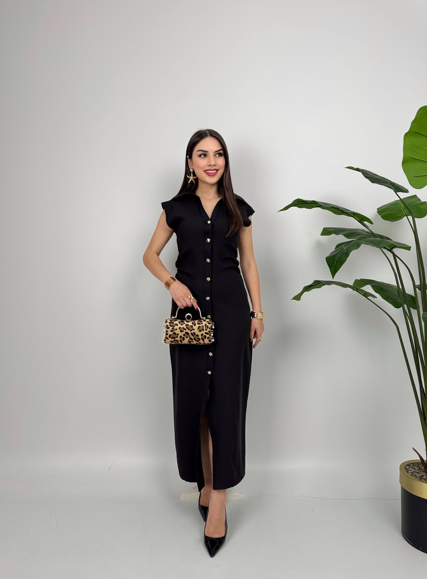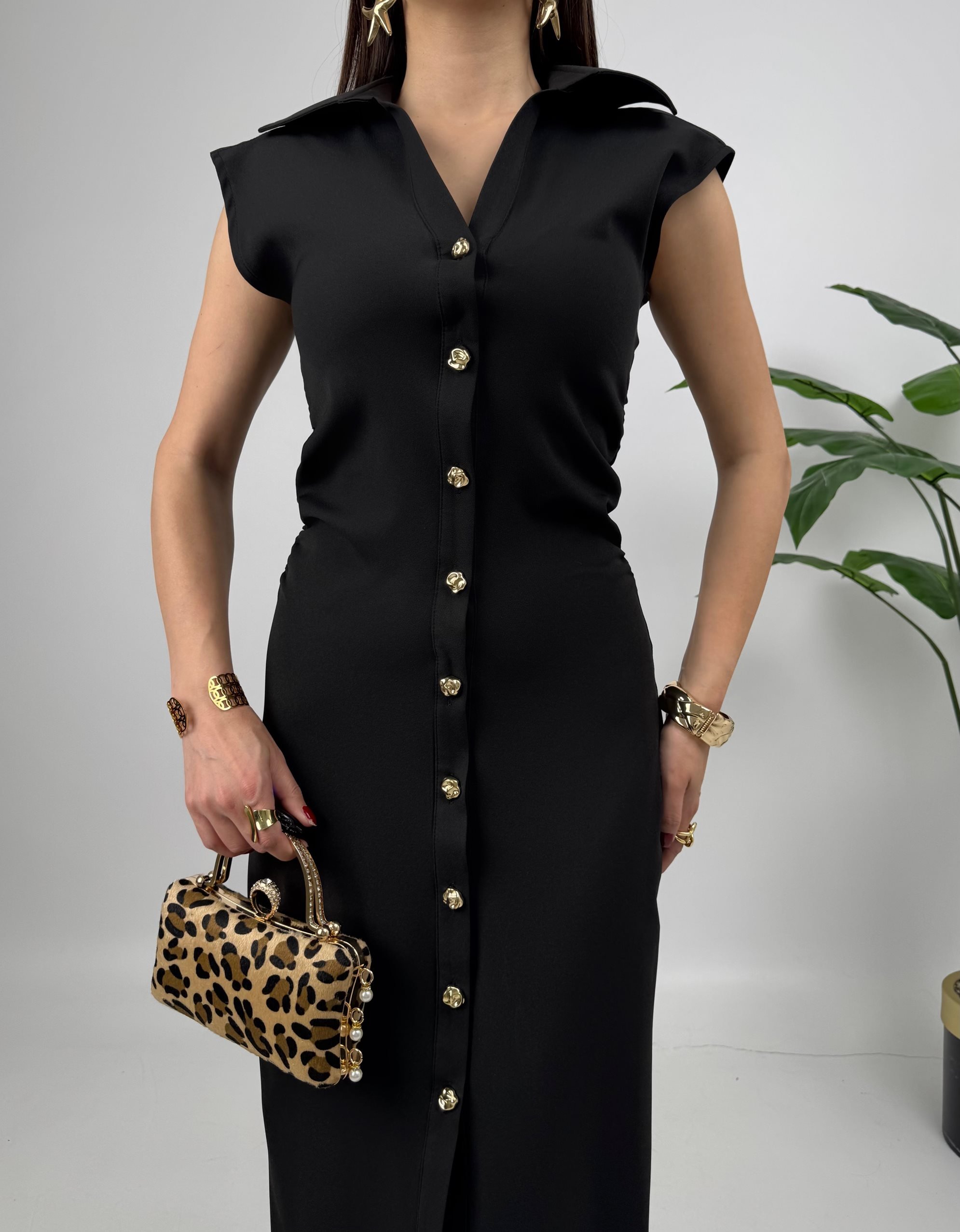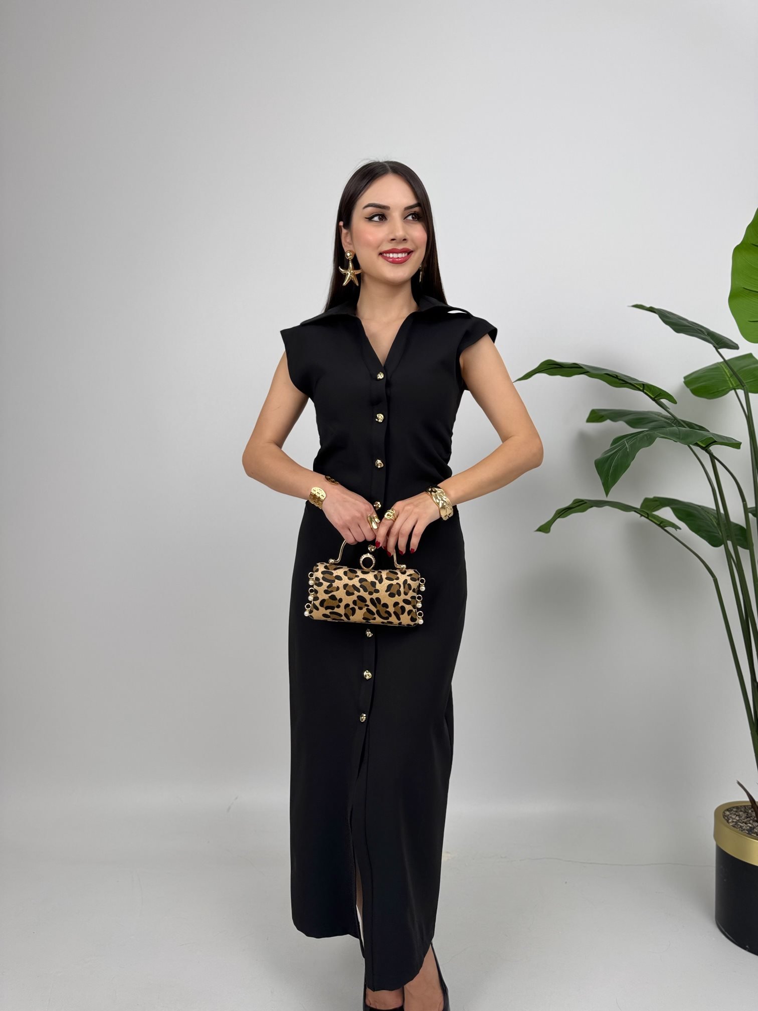 3026 ÖNDEN DÜĞMELİ ELBİSE BLACK - SİYAH