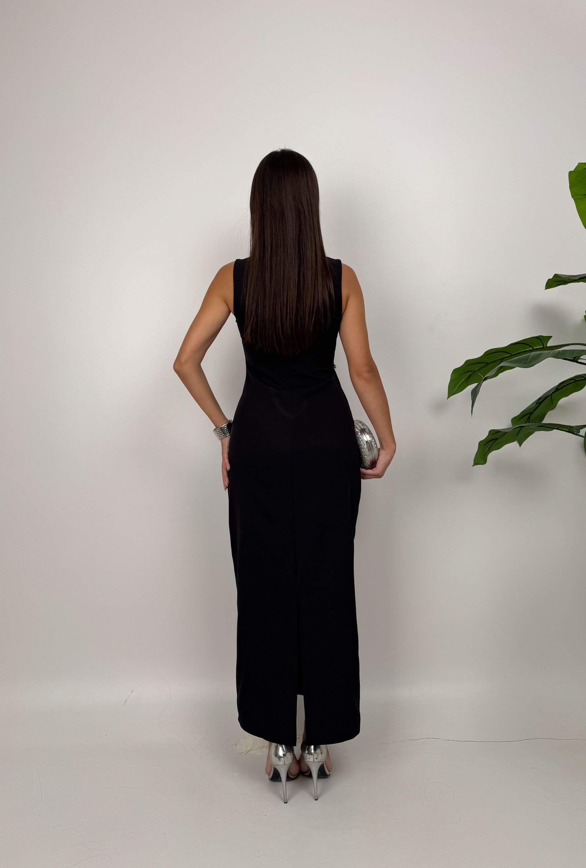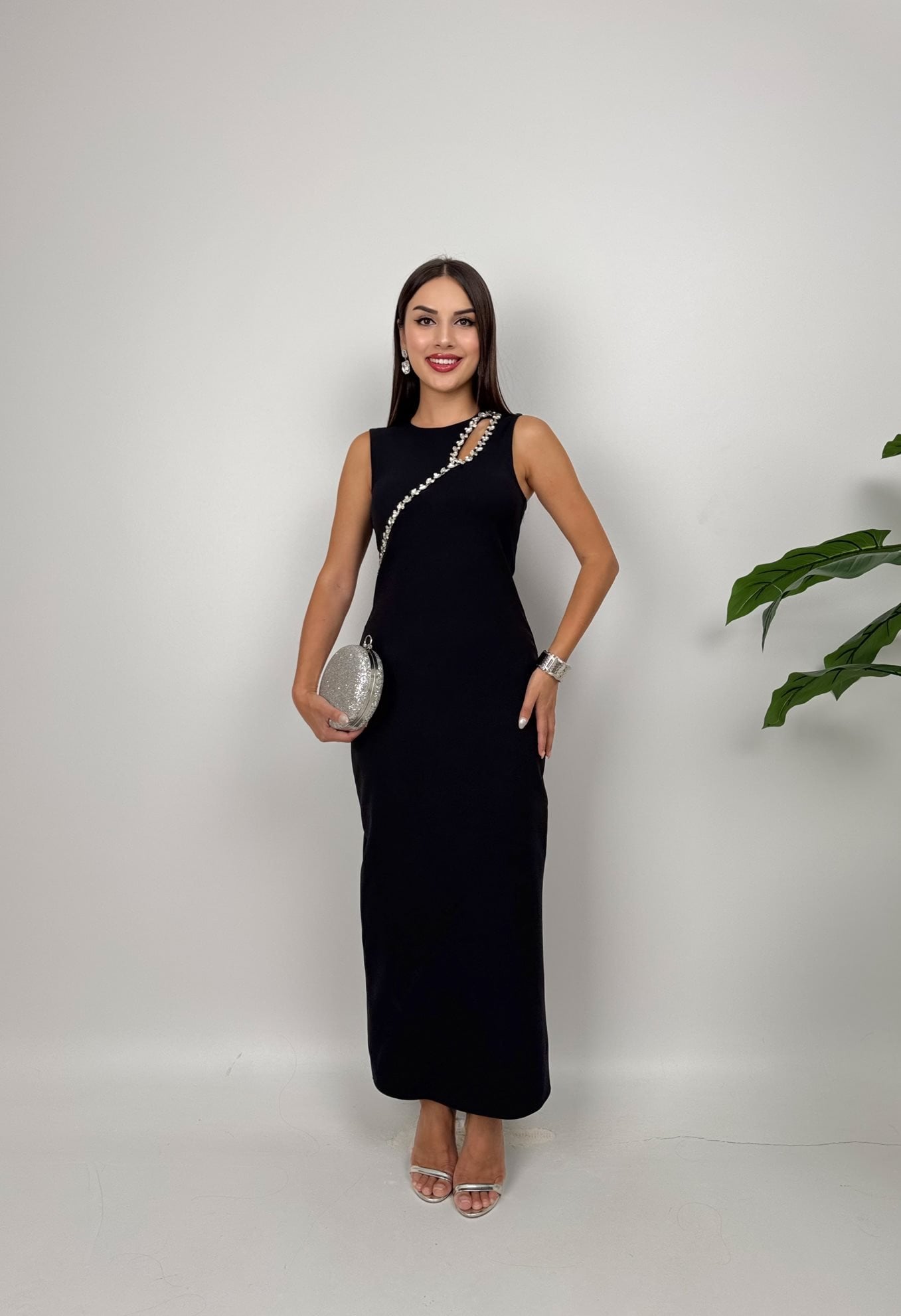 3048 OMUZ DEKOLTELİ ELBİSE BLACK - SİYAH