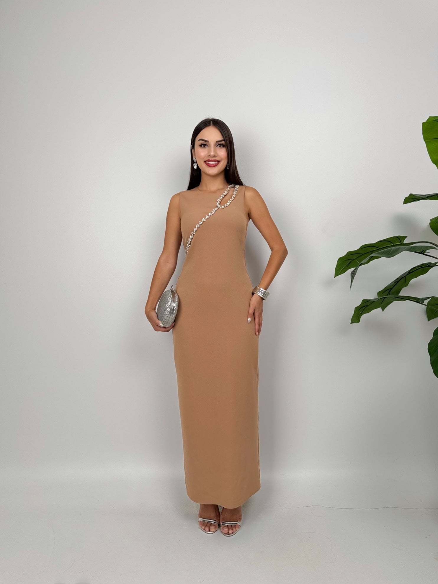 3048 OMUZ DEKOLTELİ ELBİSE MİNK - VİZON