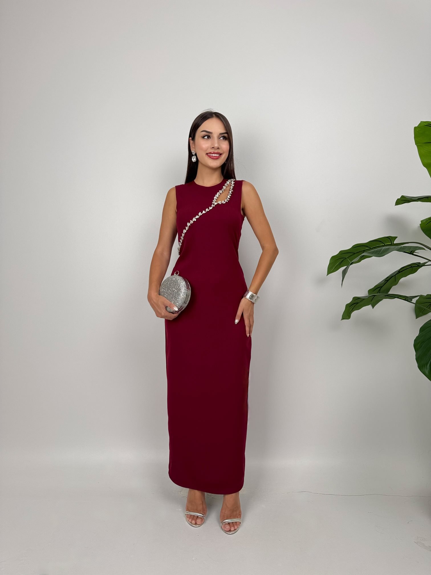 3048 OMUZ DEKOLTELİ ELBİSE BURGUNDY - BORDO