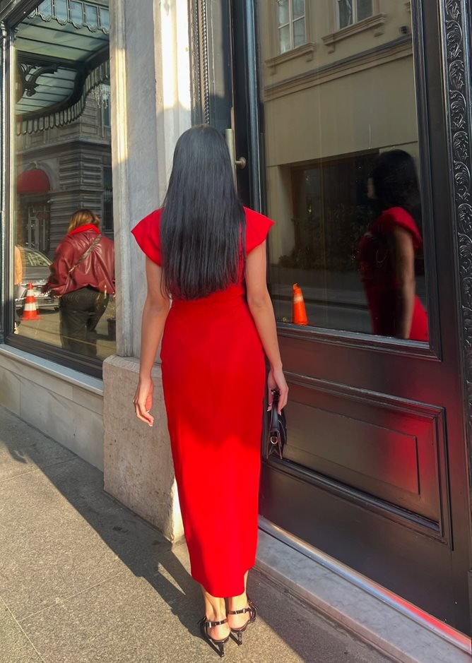 3067 FİYONKLU DÜĞMELİ ELBİSE RED - KIRMIZI