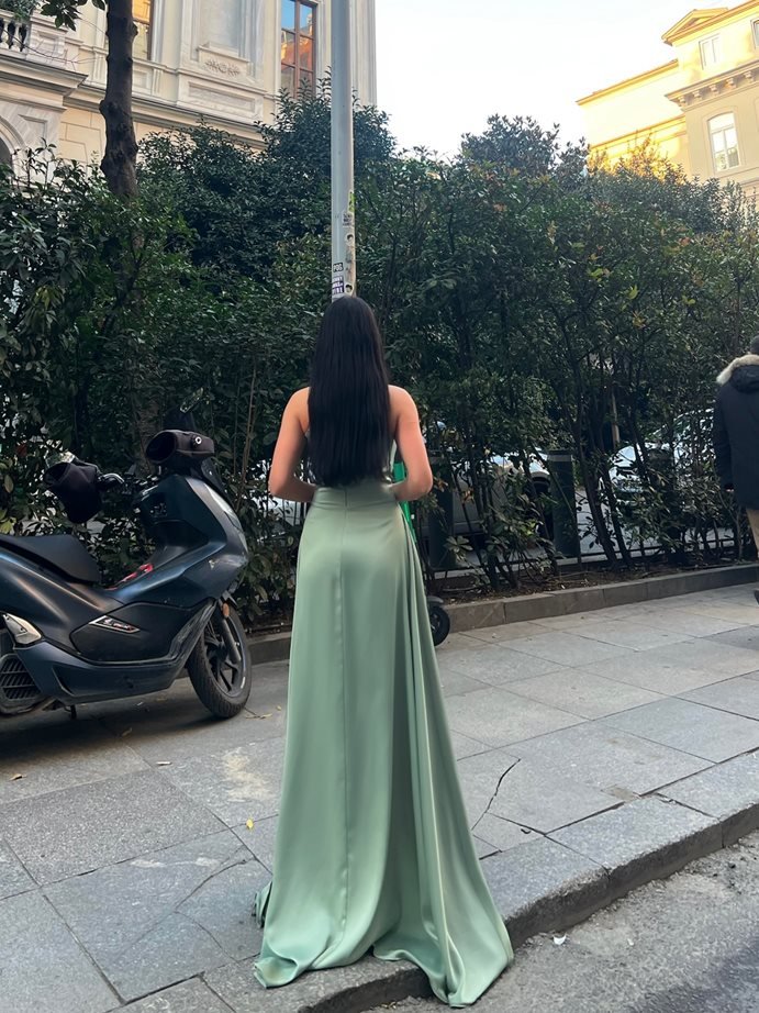 3068 SATEN ELBİSE GREEN - YEŞİL