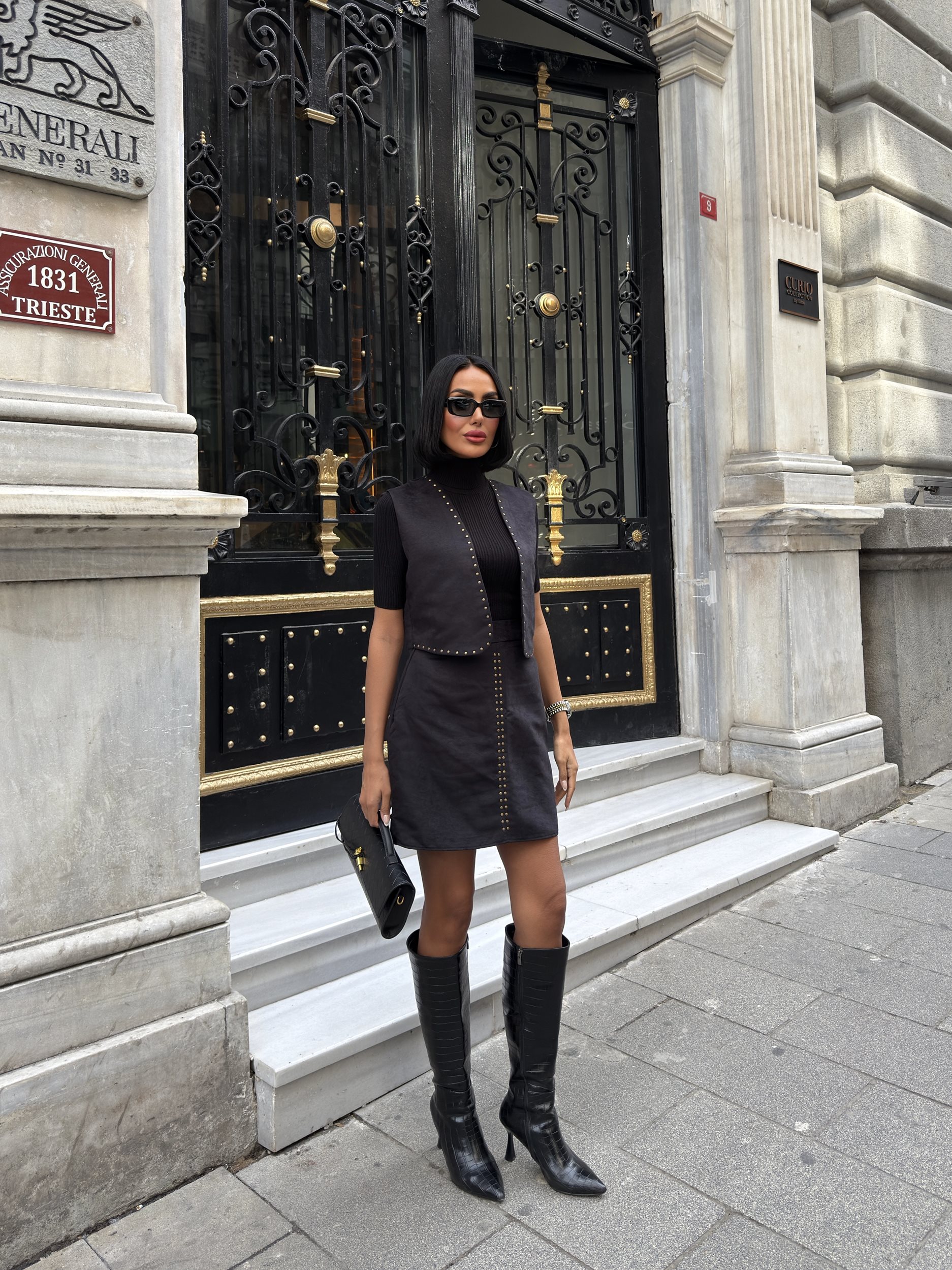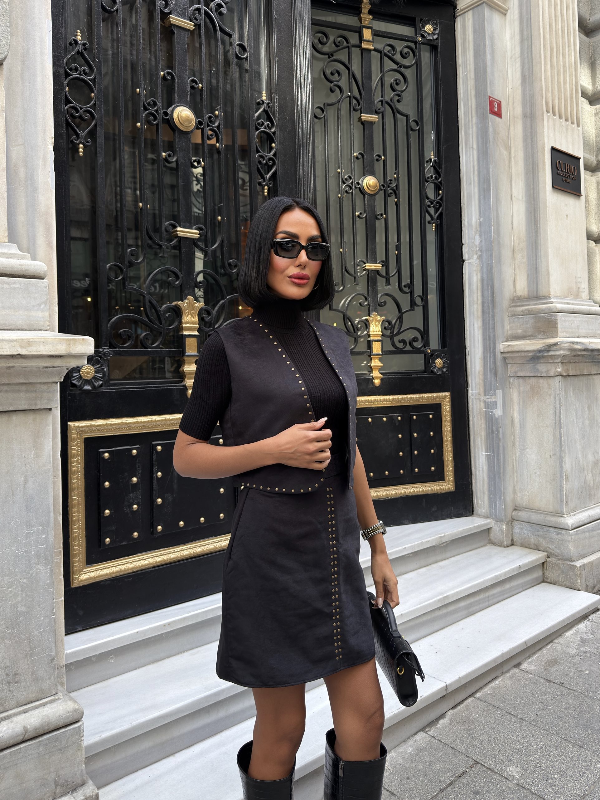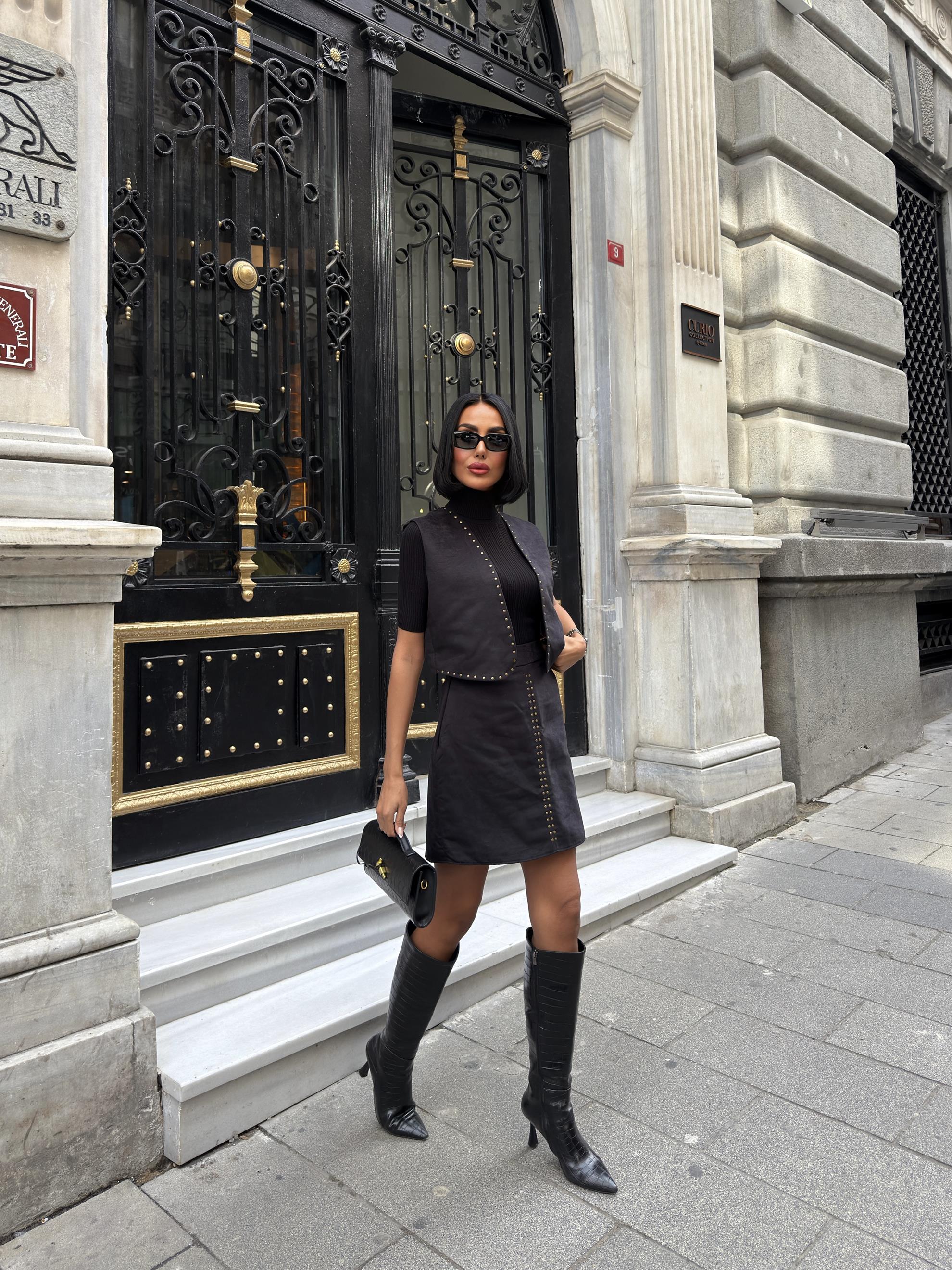 3101 YELEKLİ SUET TAKIM BLACK - SİYAH