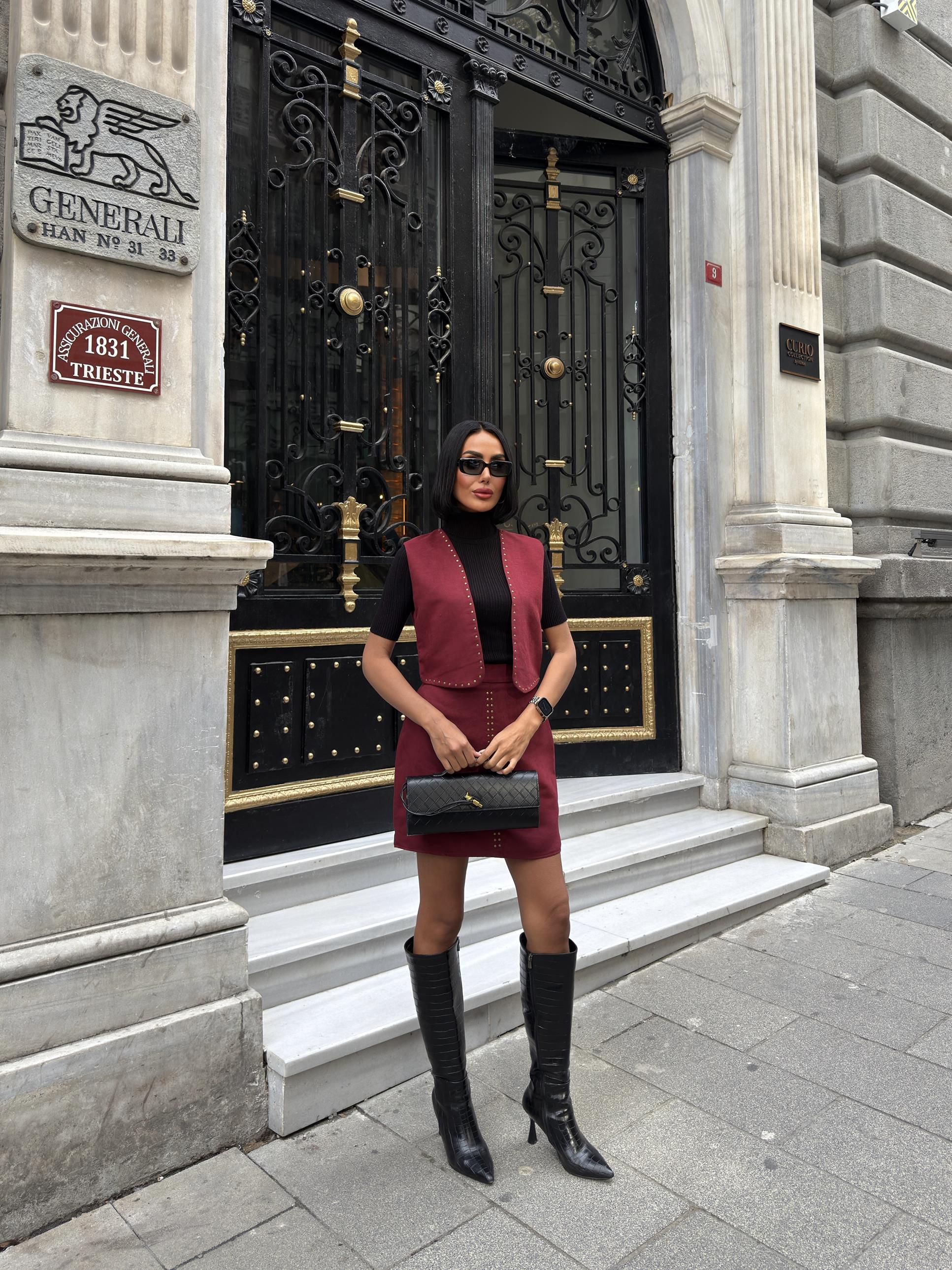 3101 YELEKLİ SUET TAKIM BURGUNDY - BORDO