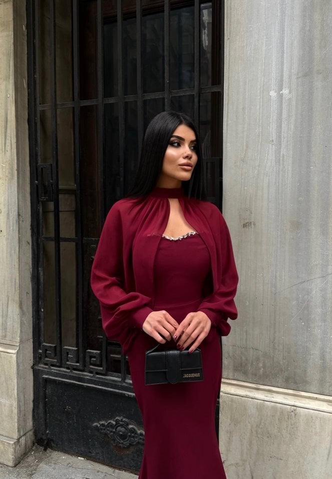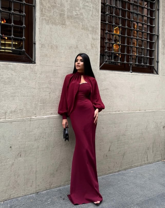 3122 TÜLLÜ ELBİSE BURGUNDY - BORDO