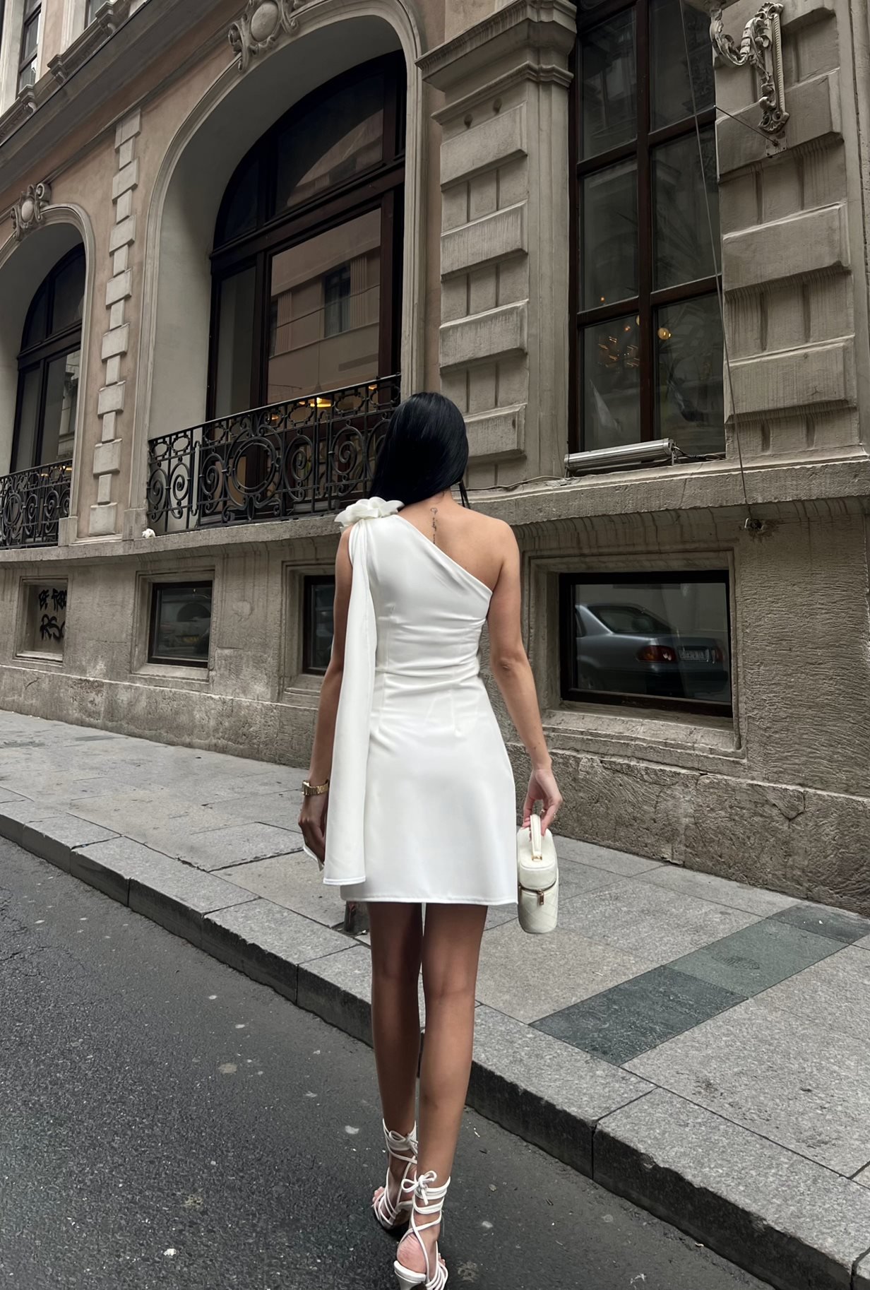 3127 ÇİÇEKLİ ELBİSE WHİTE - BEYAZ