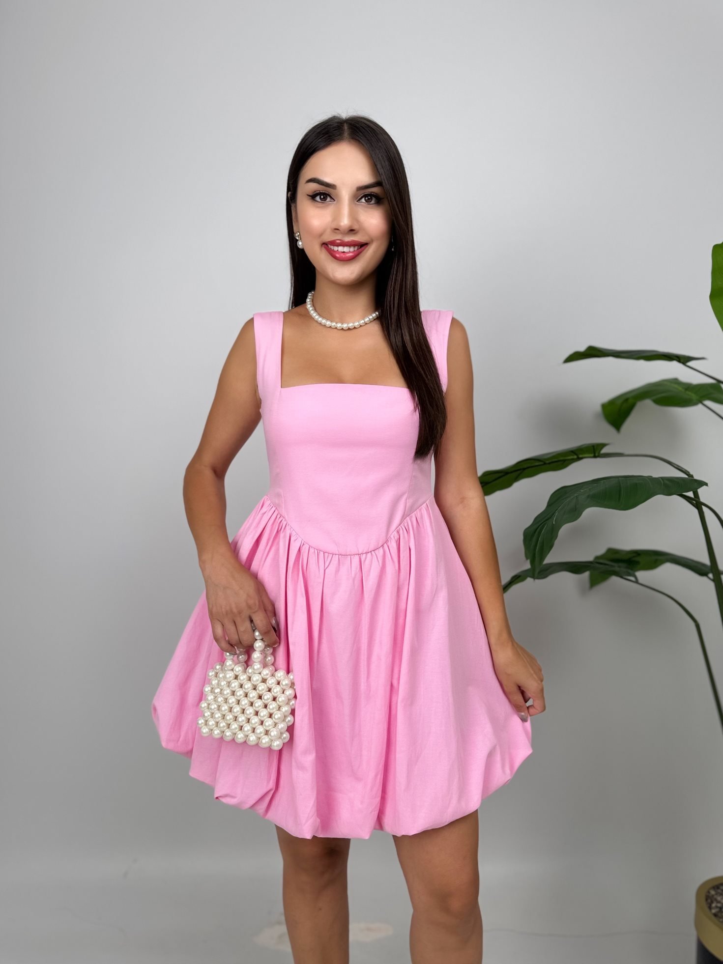 4003 TERİKOTON GİPELİ BALON ELBİSE PİNK - PEMBE