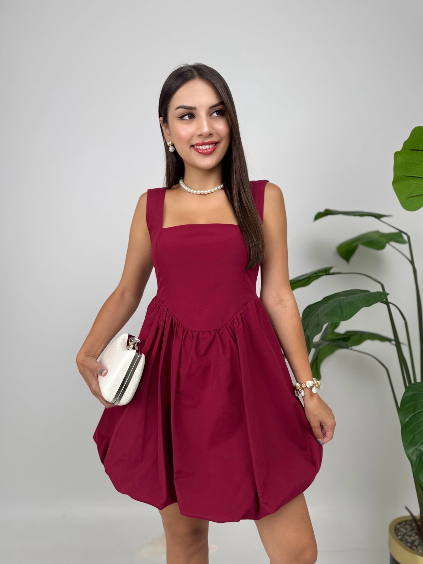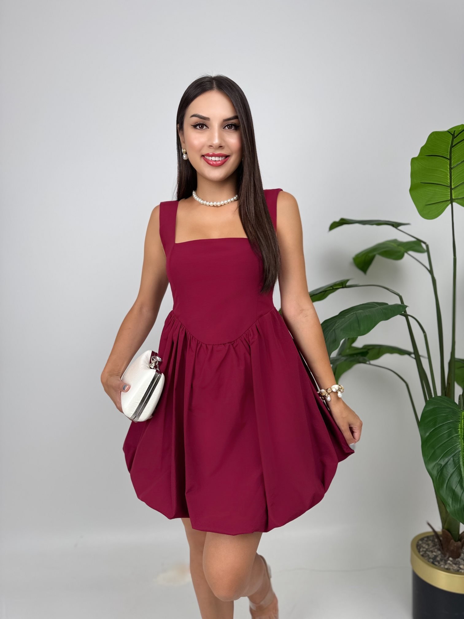 4003 TERİKOTON GİPELİ BALON ELBİSE BURGUNDY - BORDO
