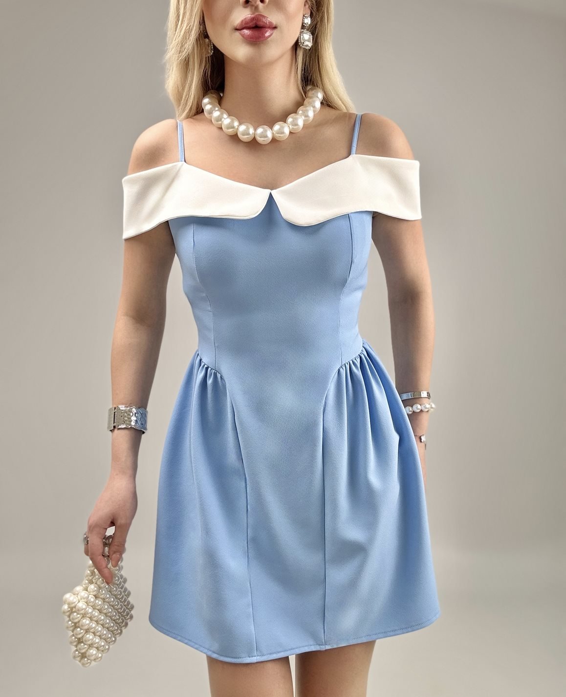 4006 ASKILI GÖGÜS ALERLİ KISA ELBİSE BLUE - MAVİ