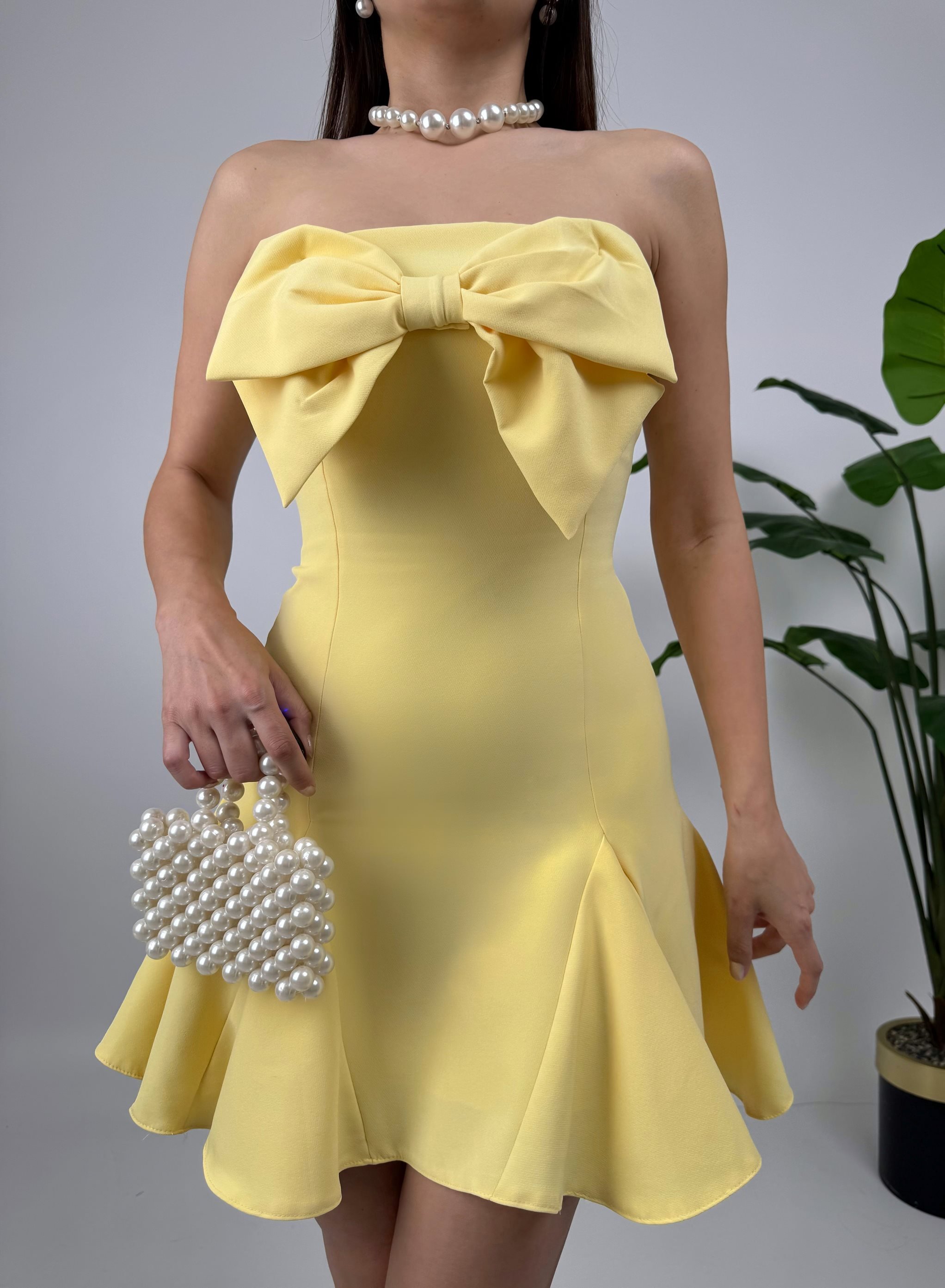 4013 ÖN FİYONK ARKA GİPELİ KISA ELBİSE YELLOW - SARI