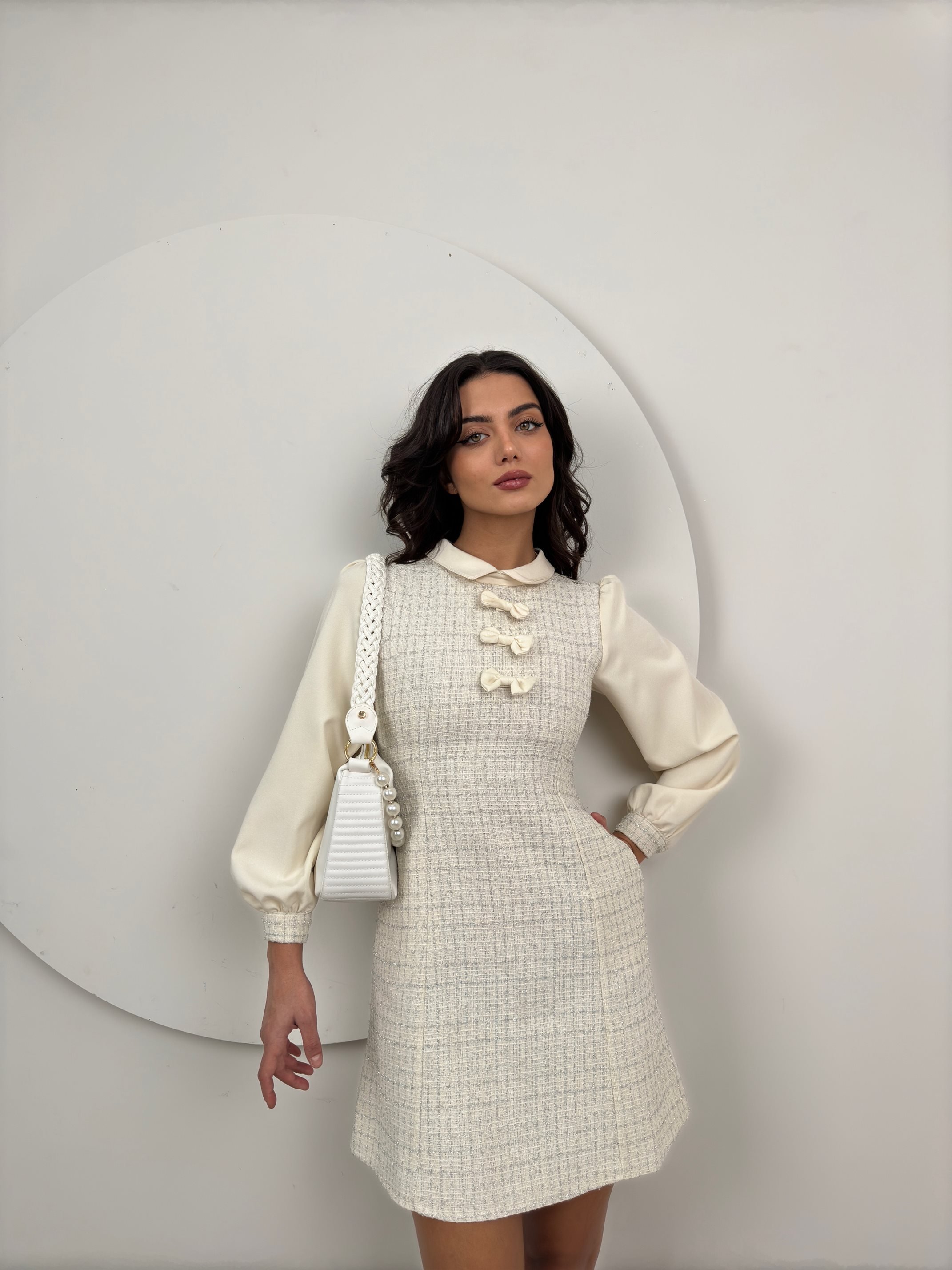 1025 SİMLİ ŞANEL ELBİSE ECRU - EKRU