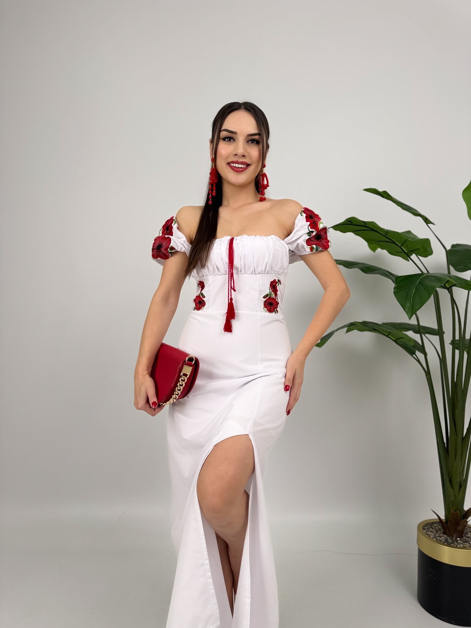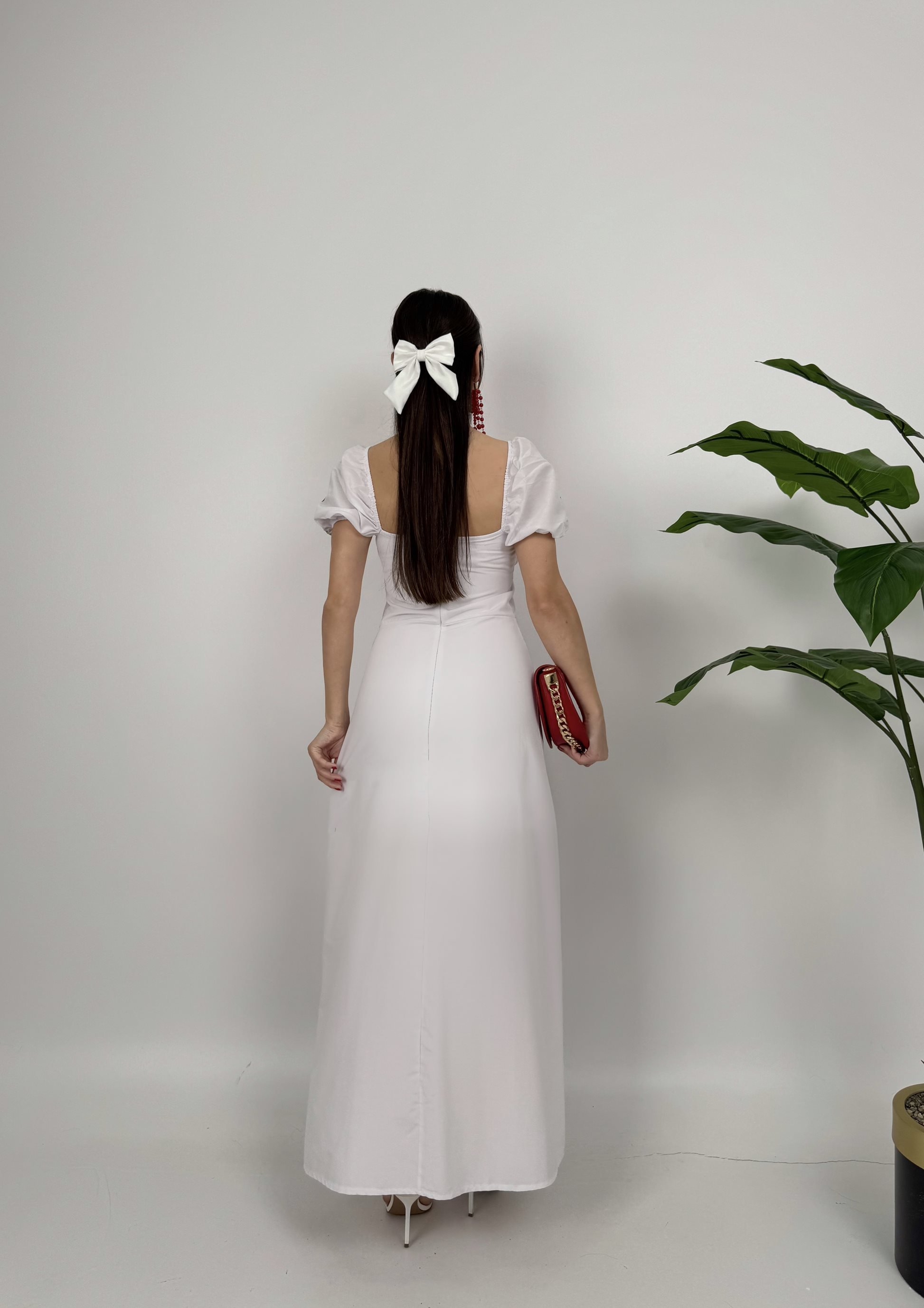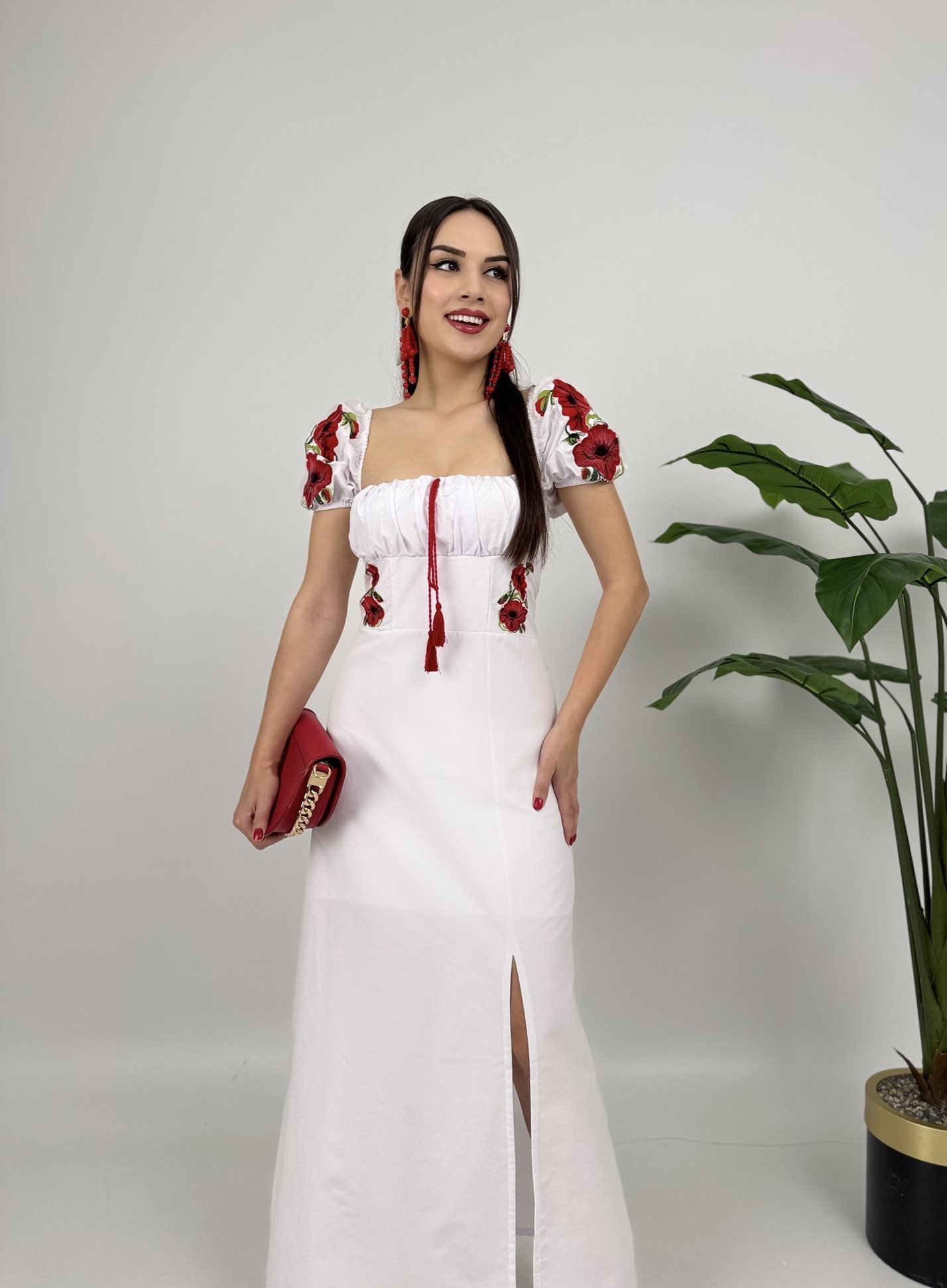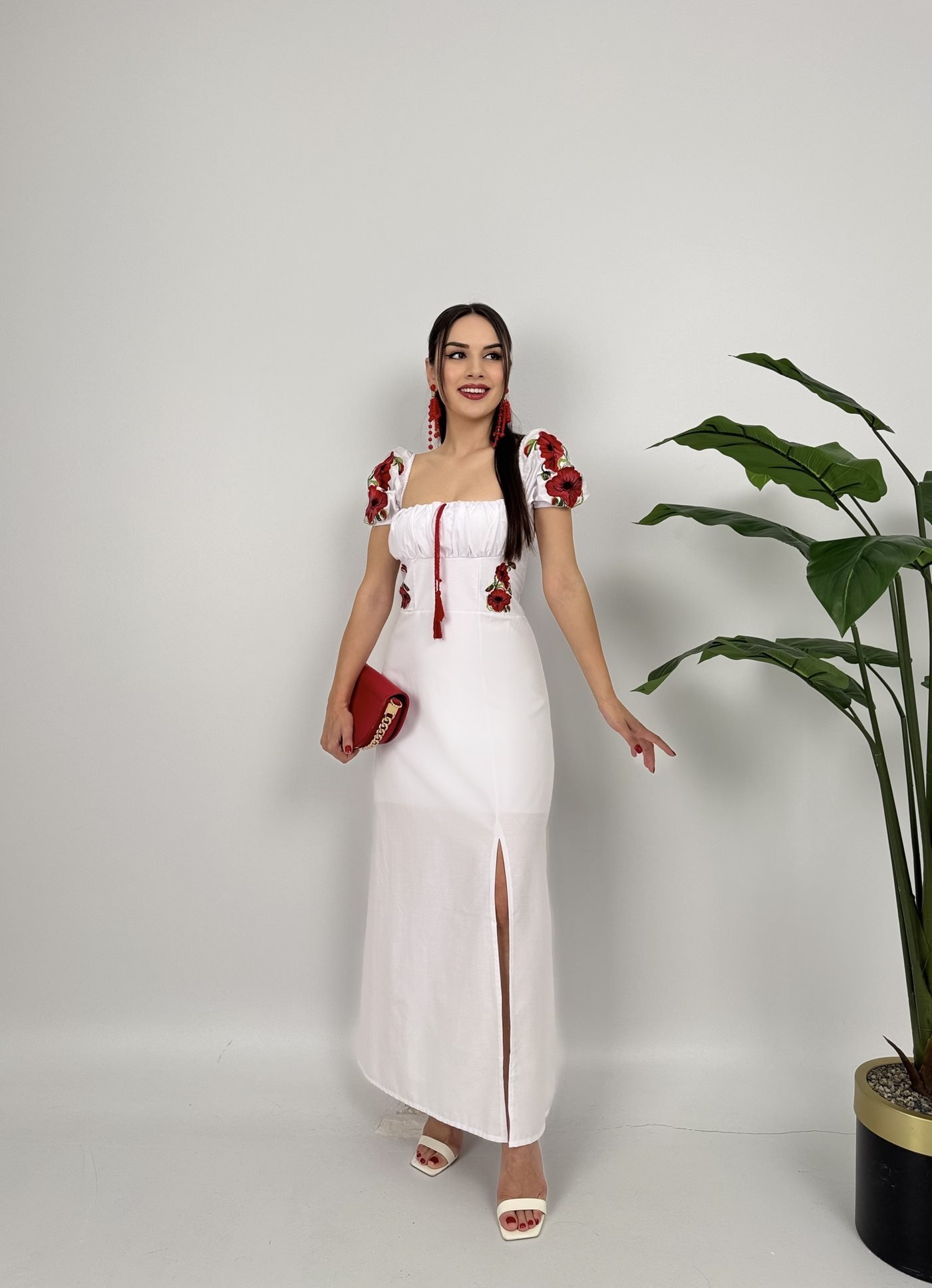 2037 NAKIŞLI UZUN ELBİSE WHİTE - BEYAZ