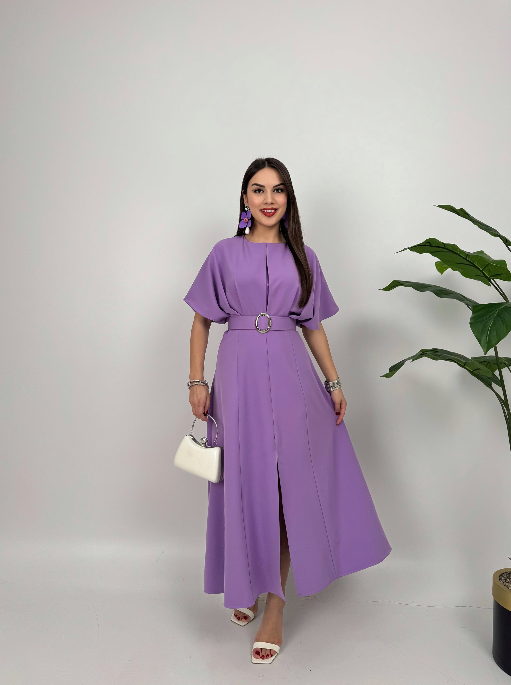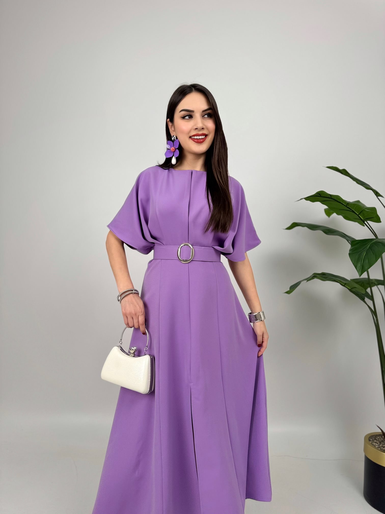 2056 ATLAS KUMAŞ KEMERLİ ELBİSE LİLAC - LİLA