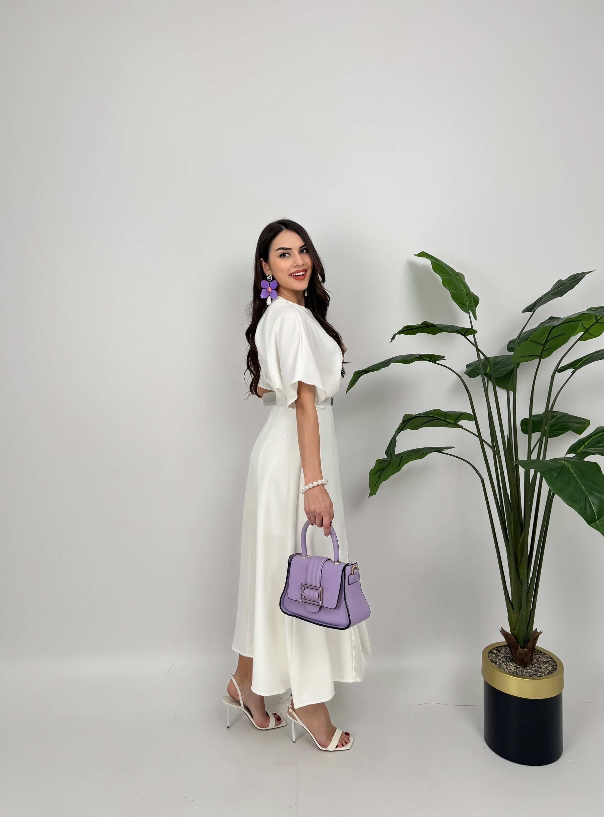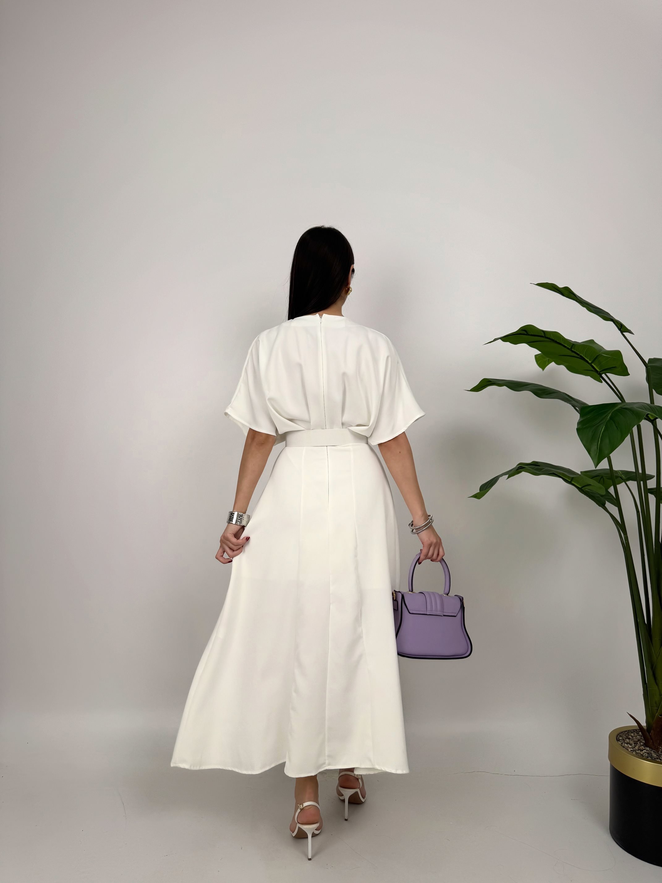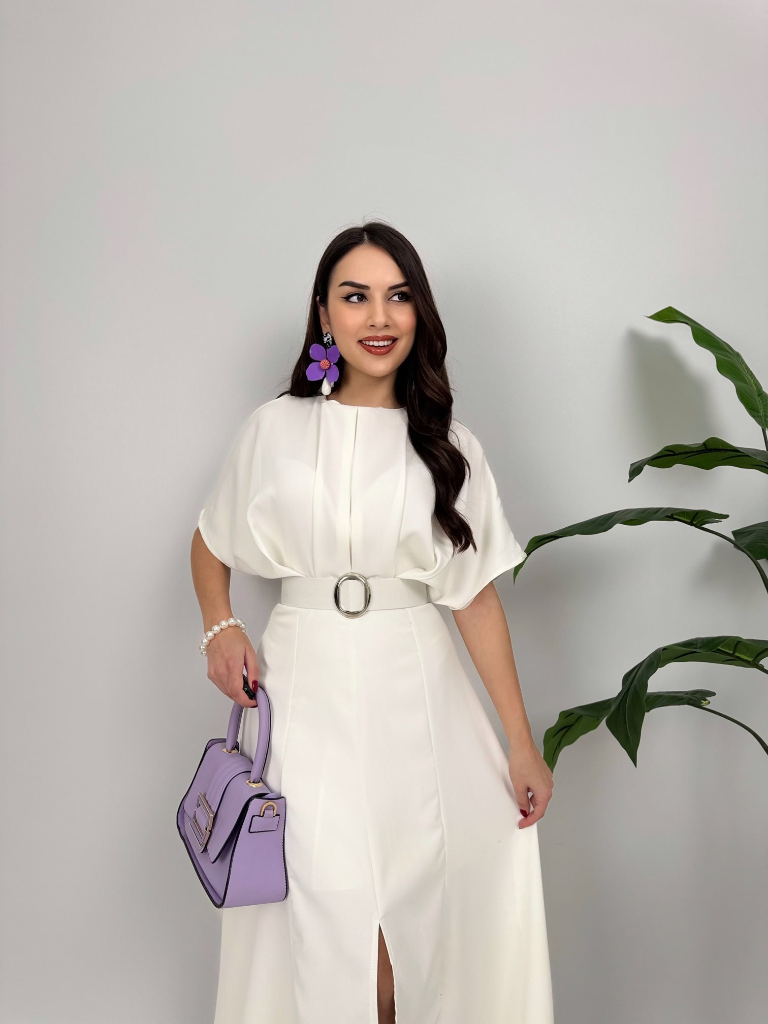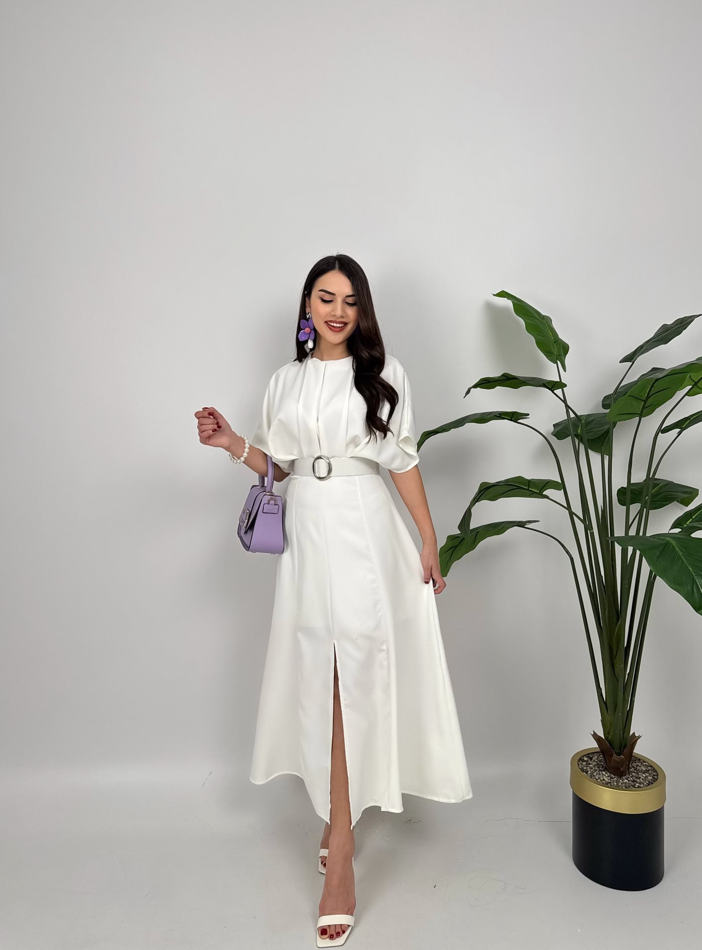 2056 ATLAS KUMAŞ KEMERLİ ELBİSE WHİTE - BEYAZ