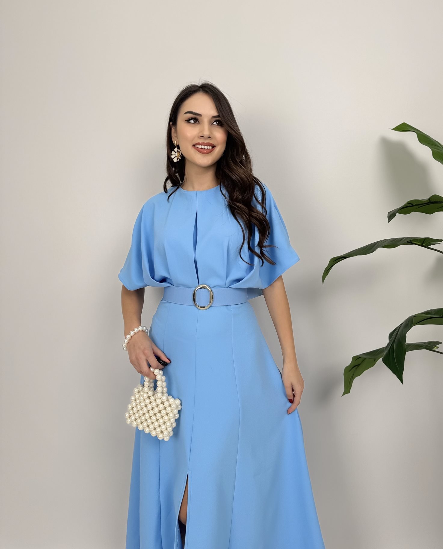 2056 ATLAS KUMAŞ KEMERLİ ELBİSE