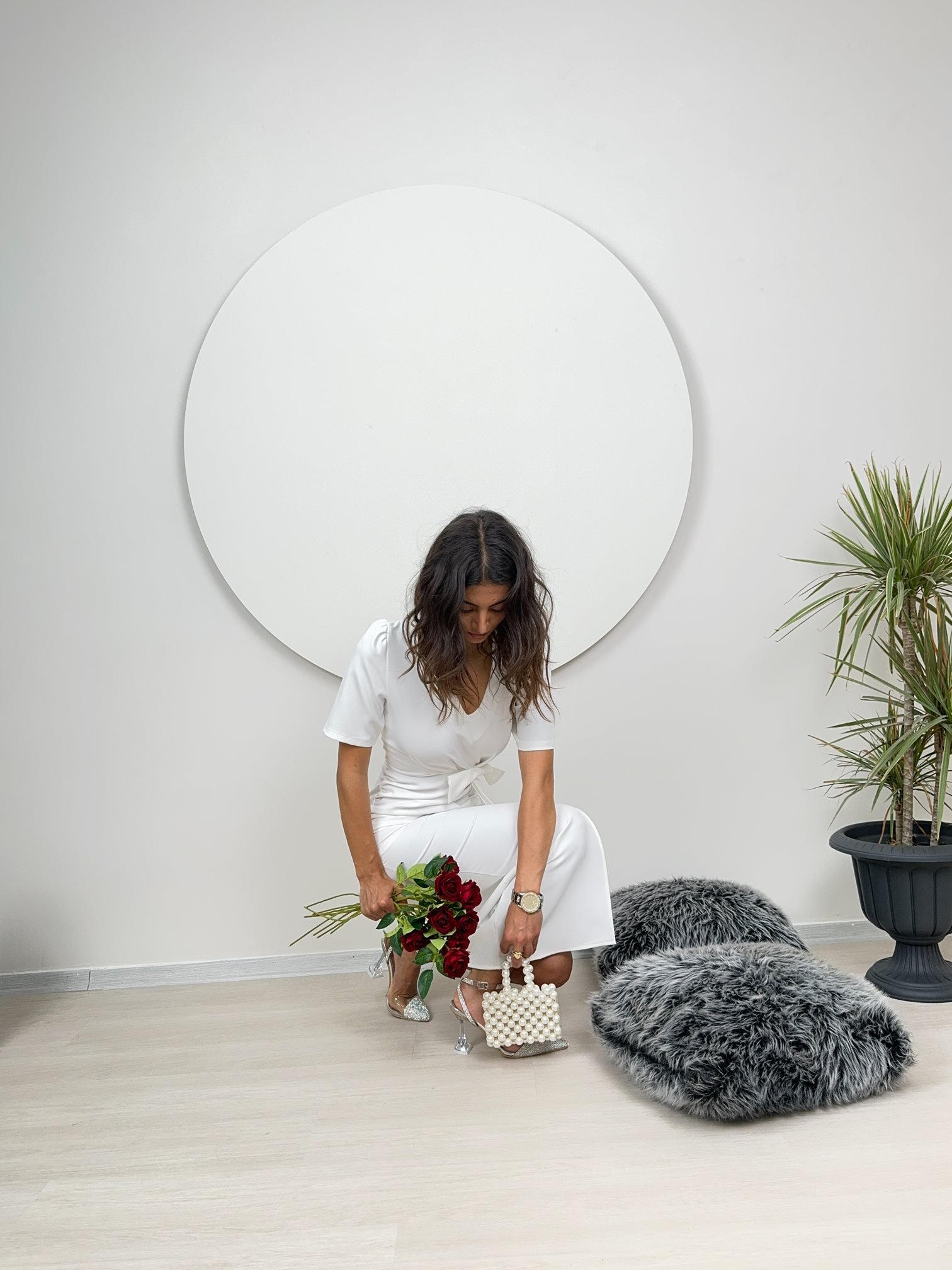 2057 ÖNÜ BÜZGÜLÜ FYONK DETAY ATLAS ELBİSE WHİTE - BEYAZ
