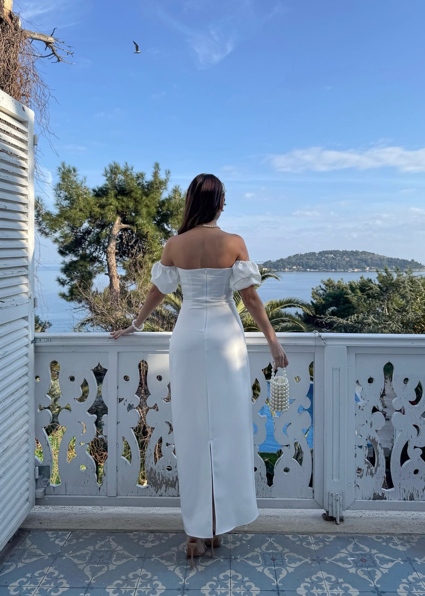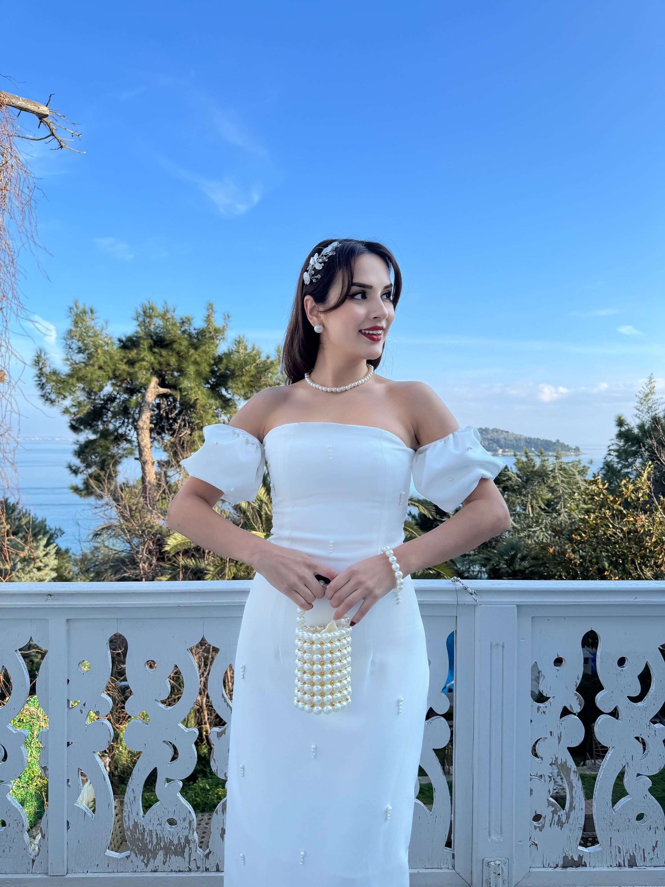2125 ÖNLER İNCİ DETAY TASARIM ELBİSE WHİTE - BEYAZ