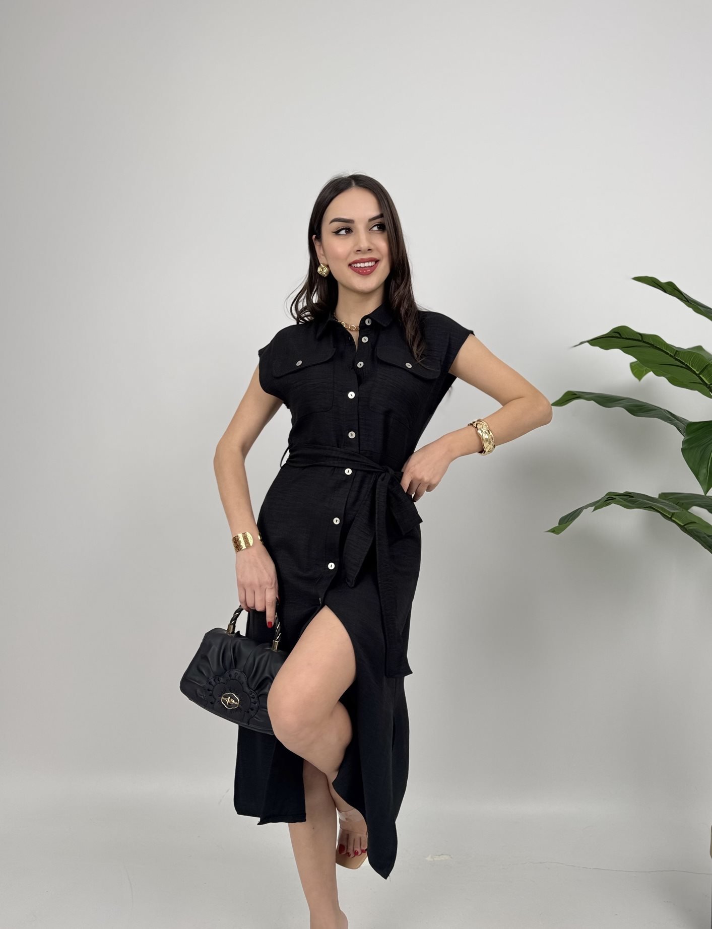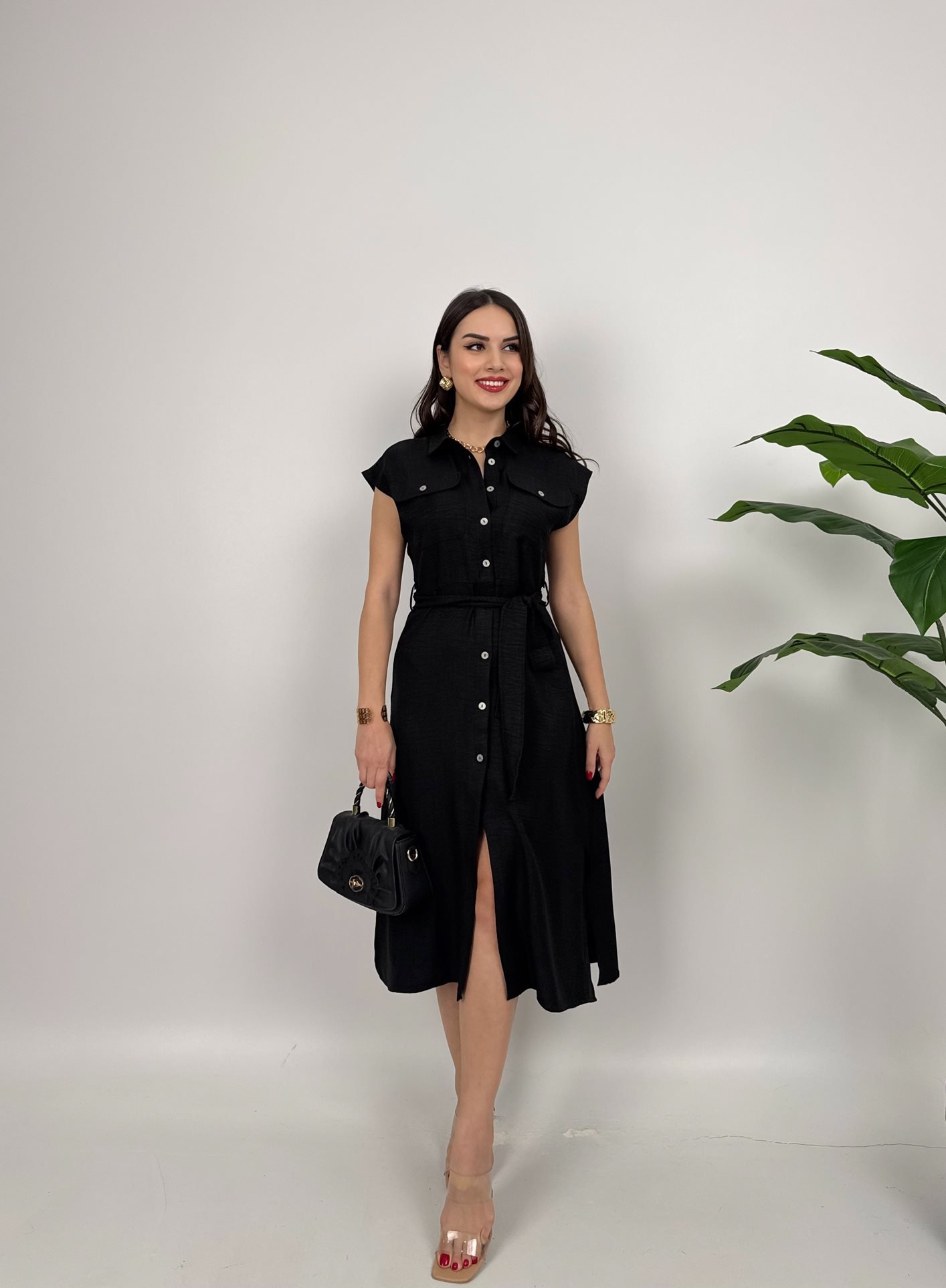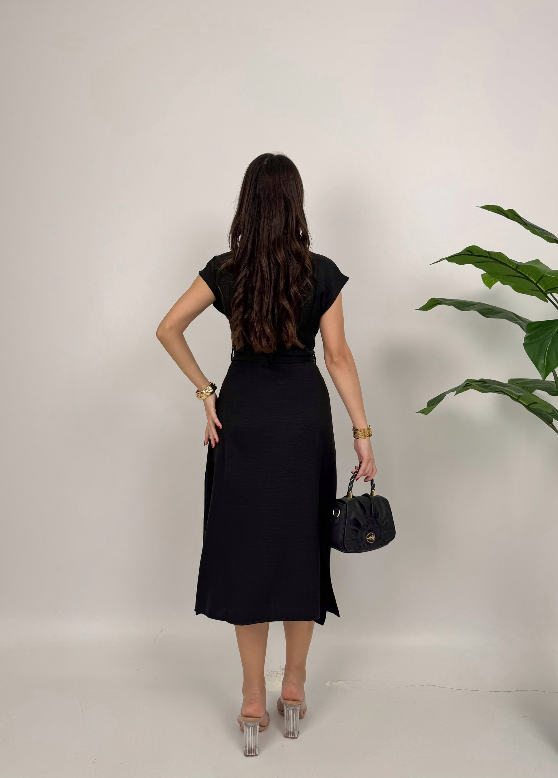2150 KOLSUZ MİDİ ELBİSE BLACK - SİYAH