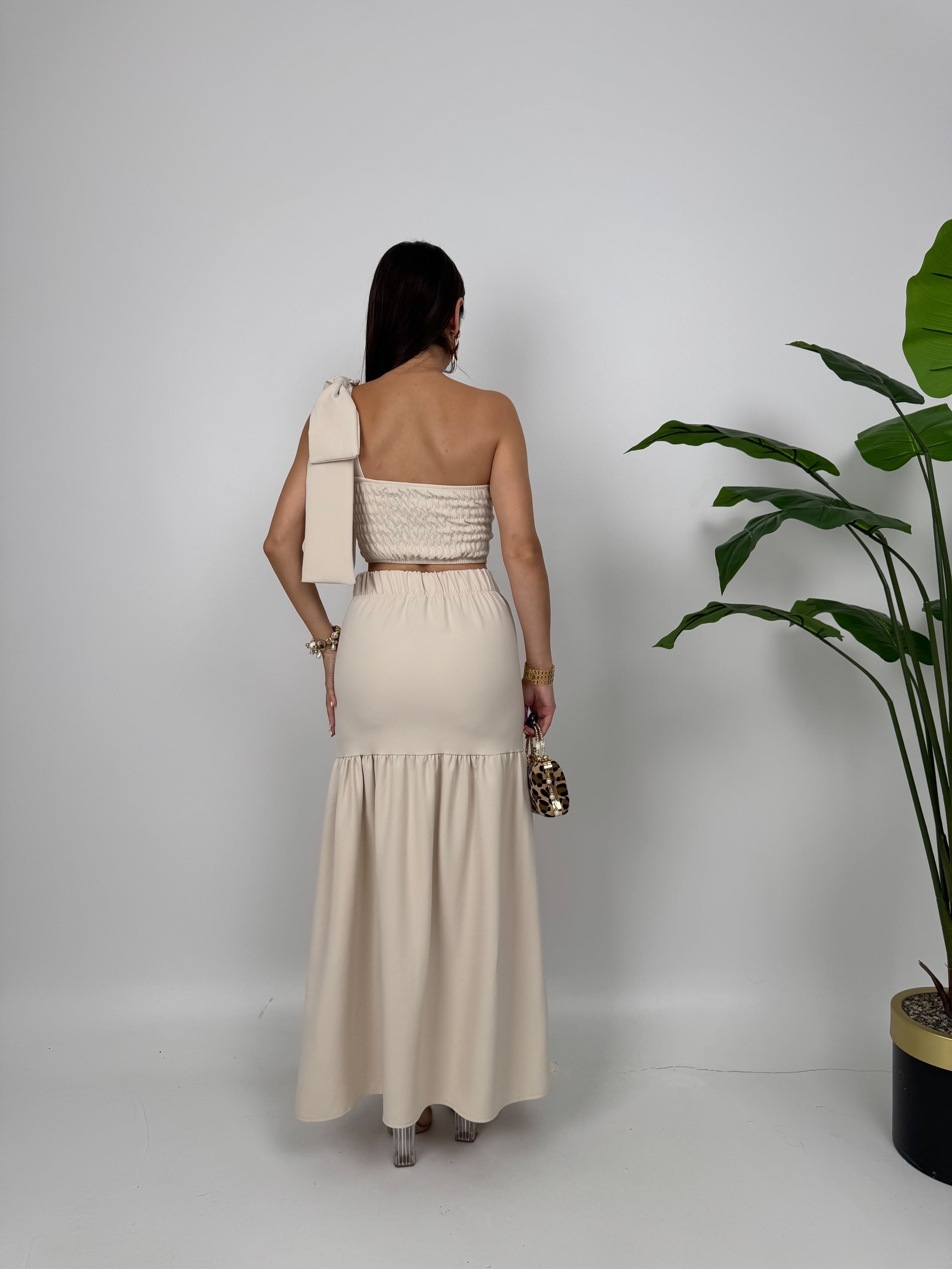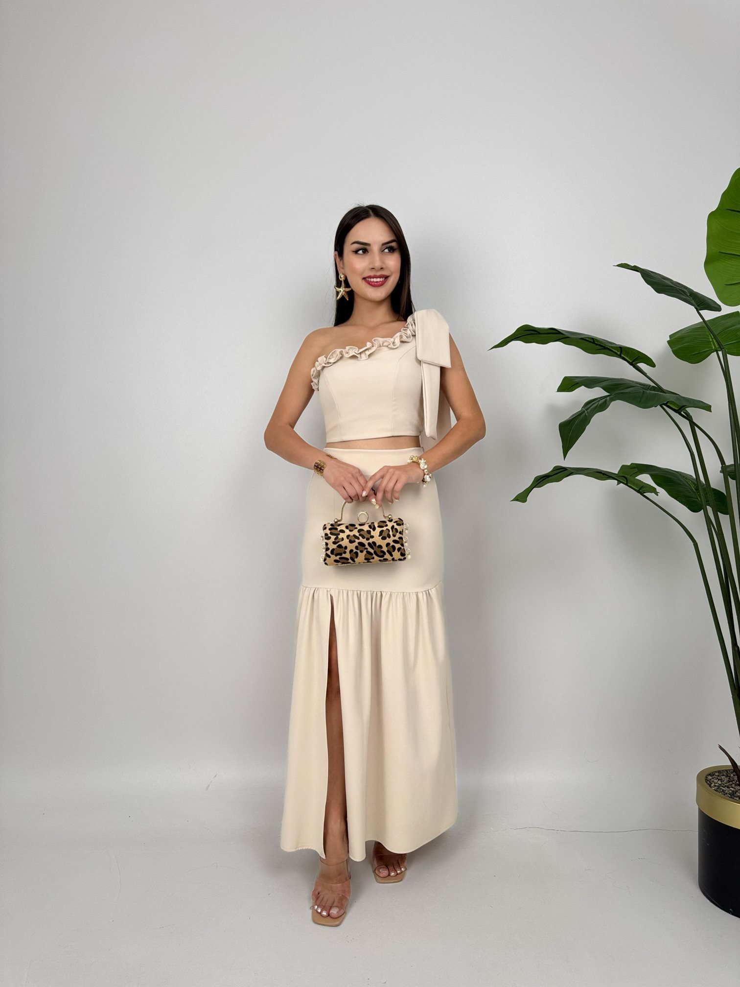 3011 GOĞUS FIRFIRLI ELBİSE STONE - TAŞ