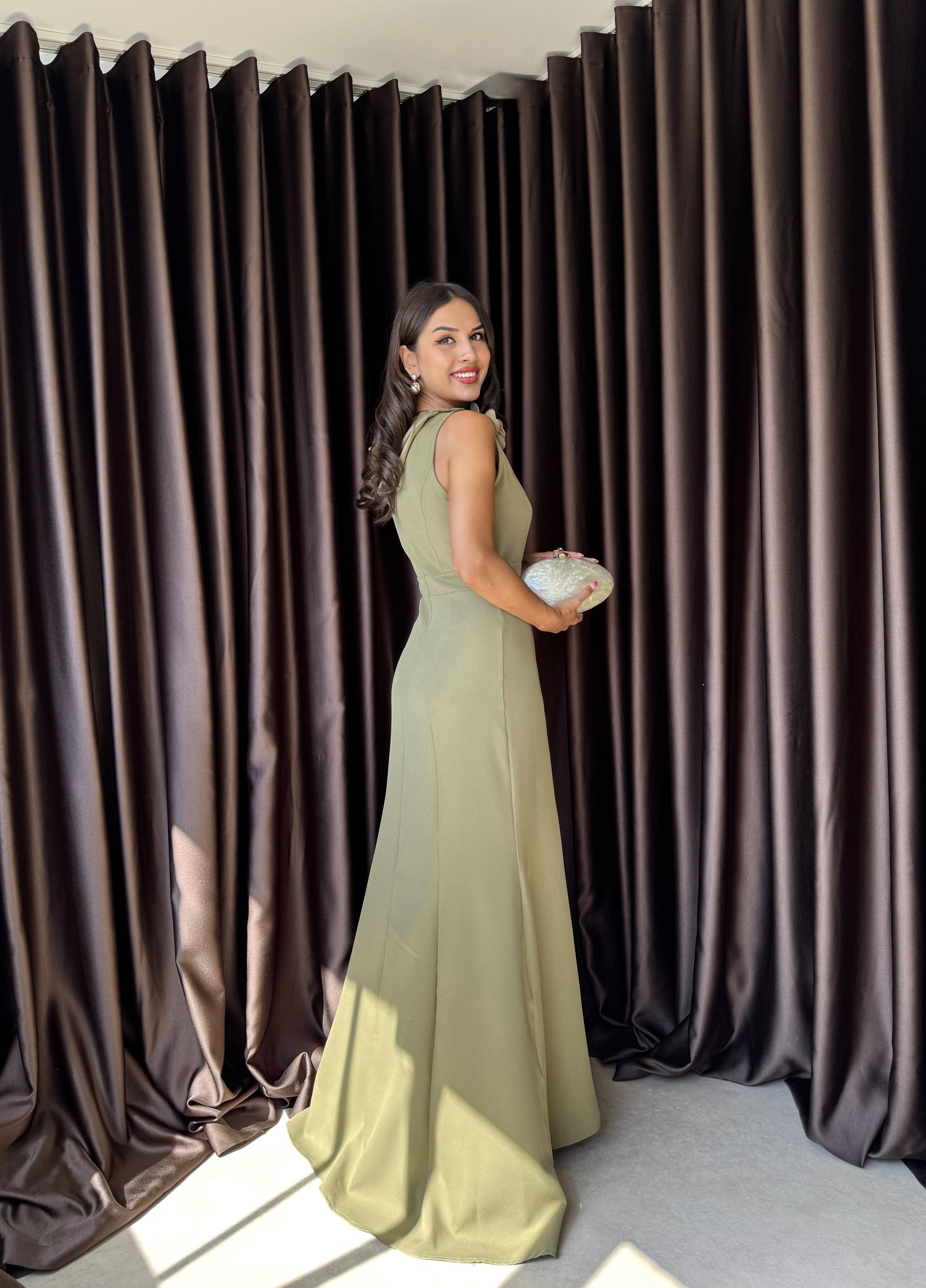 3025 OMUZ FIRFIRLI GÜLLÜ ELBİSE KHAKİ - HAKİ