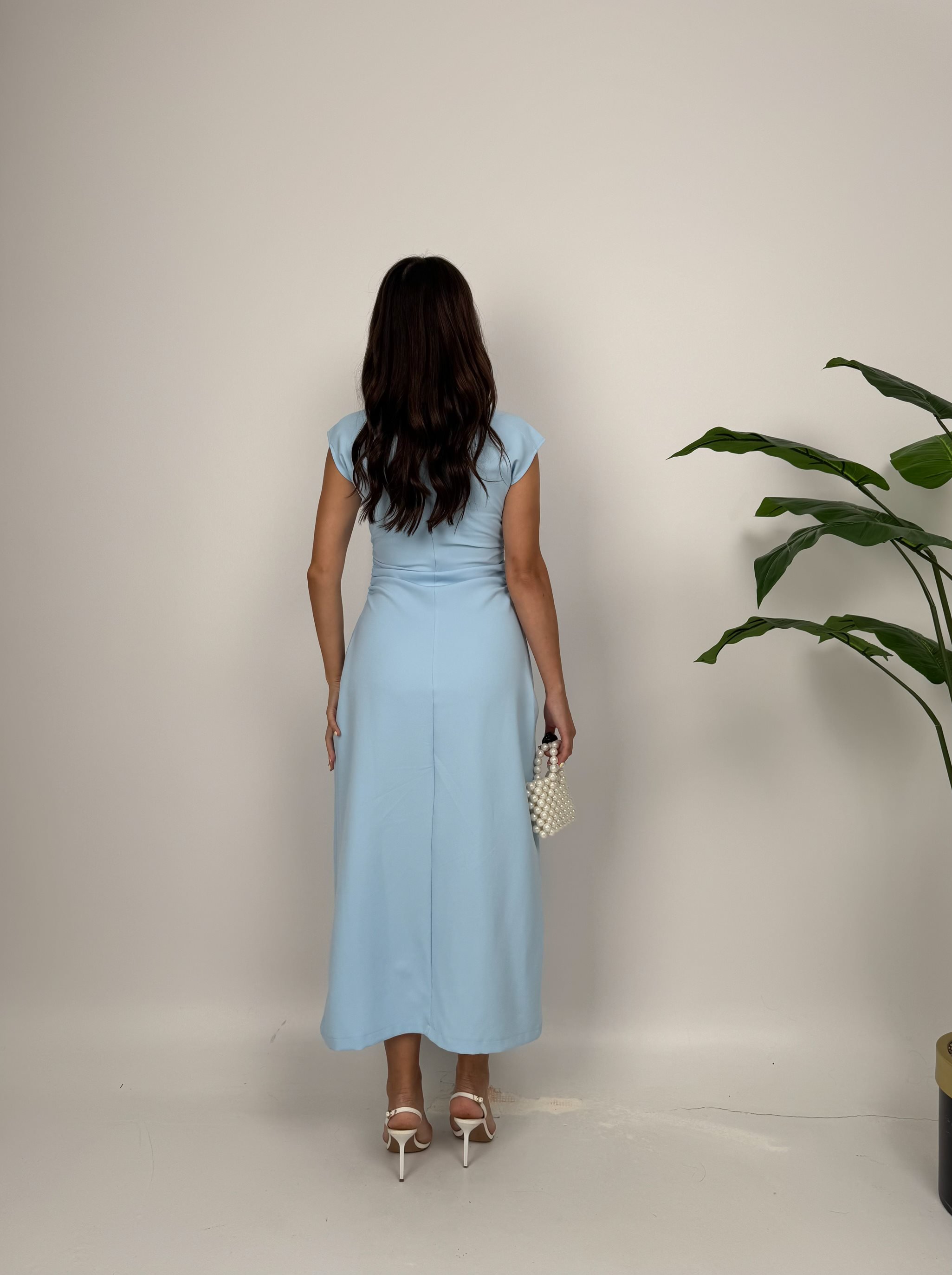 3026 ÖNDEN DÜĞMELİ ELBİSE BLUE - MAVİ