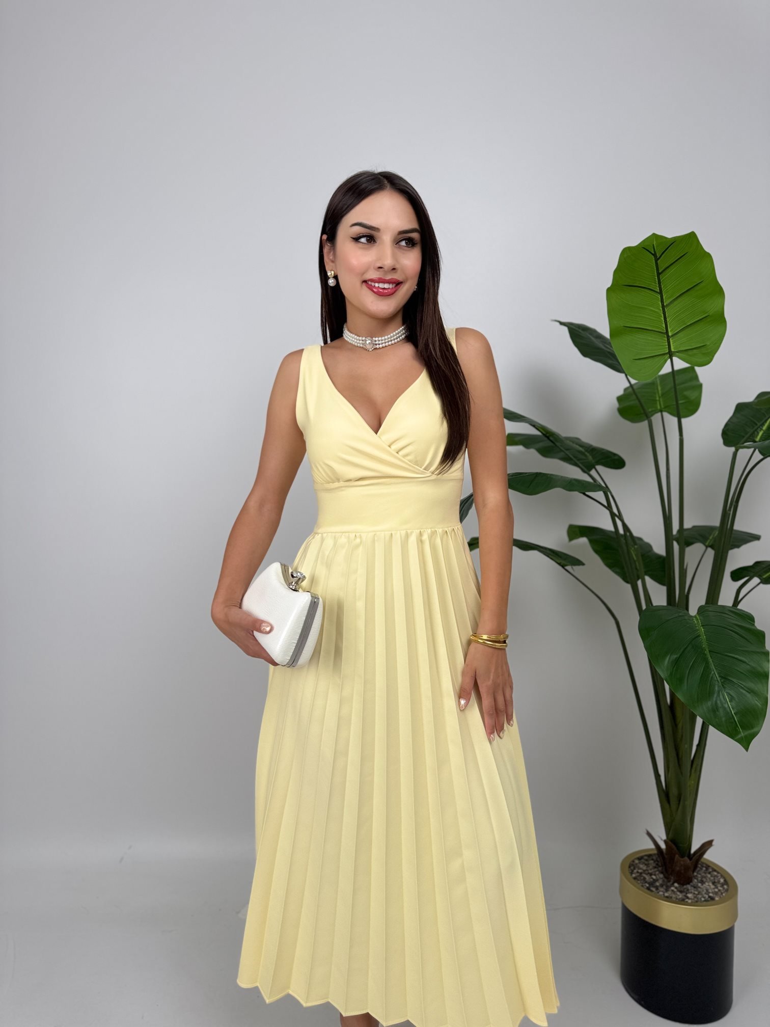 3038 PLİSELİ ELBİSE YELLOW - SARI