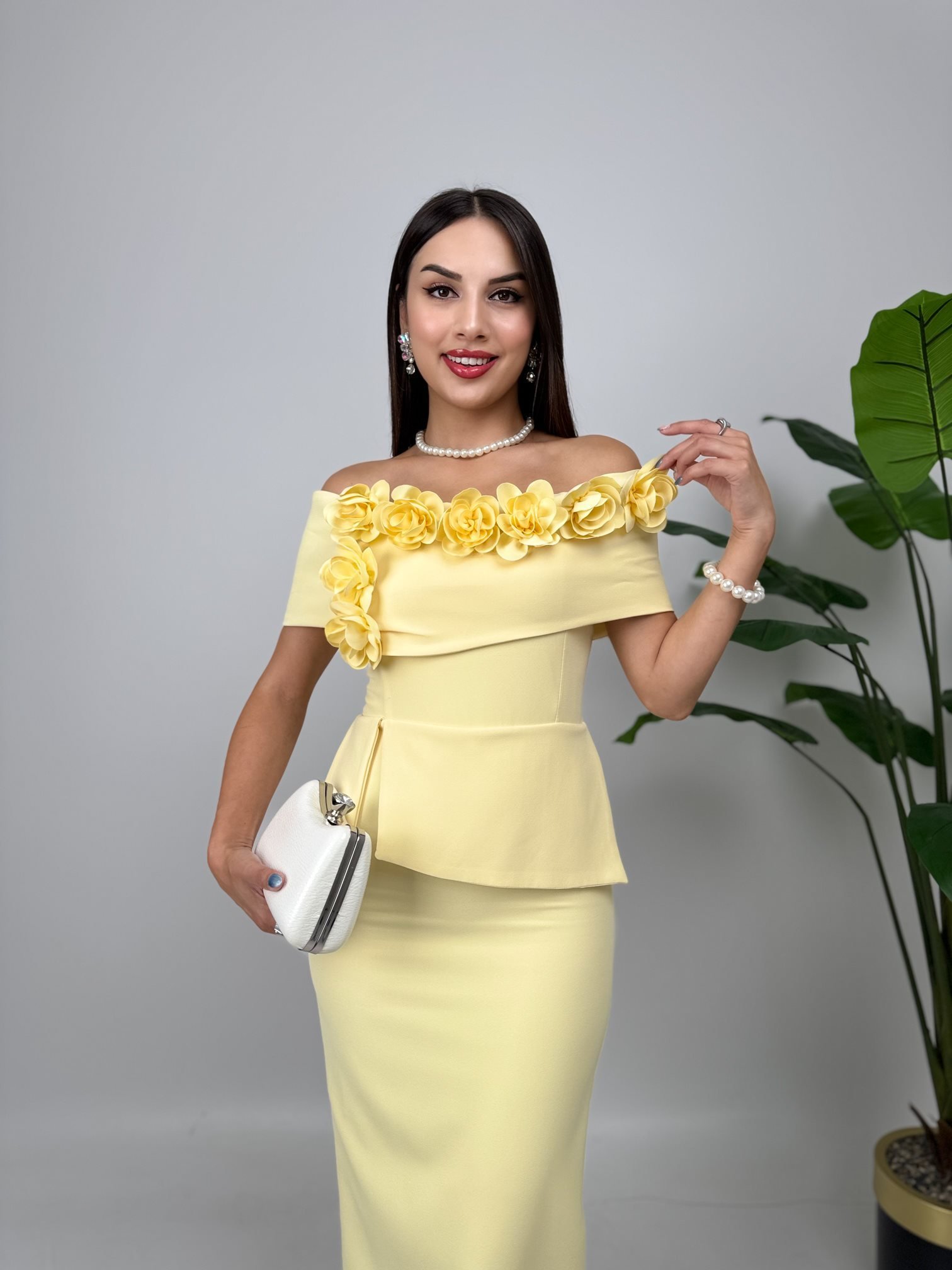 3044 KAYIK YAKA GÜLLÜ ELBİSE YELLOW - SARI